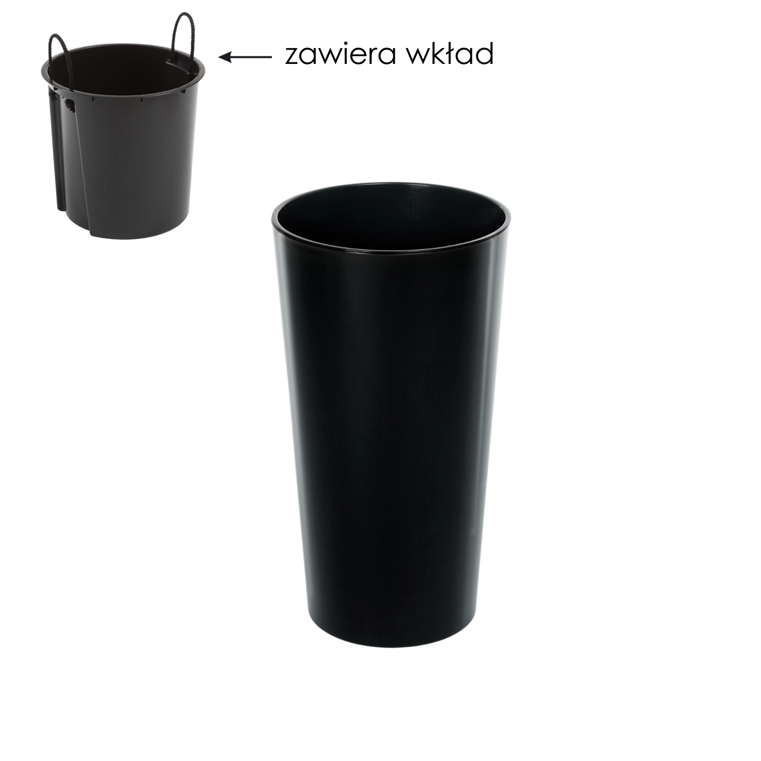 Elegáns Lilia 14 cm-es virágtartó betéttel fényes fekete kivitelben, amely praktikus megoldás a növények beltéri és kültéri neveléséhez. A tartós műanyag fagyálló és ellenáll a időjárási hatásoknak, míg a mély betét takarékoskodik a földdel és optimális helyet biztosít a gyökereknek. A fényes felület modern megjelenést kölcsönöz benti és kinti tereknek egyaránt, és könnyen tisztítható.