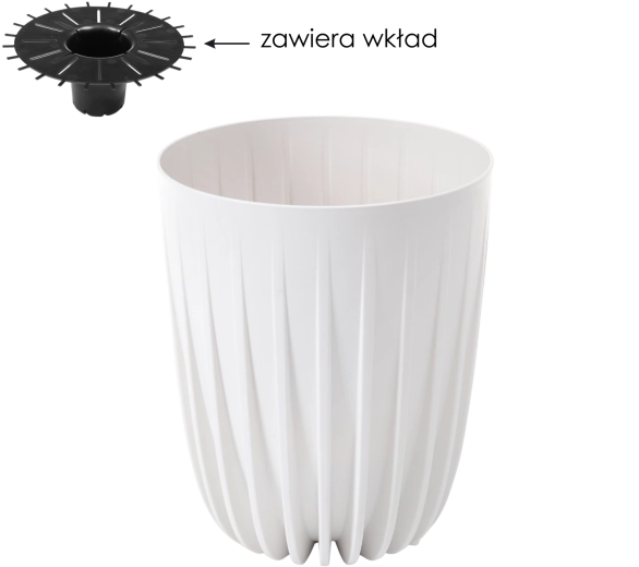 Az elegáns Mira Eco Recycled virágcserép, 19 cm átmérővel, újrahasznosított műanyagból készült, és modern 3D bordázott dizájnnal rendelkezik. A beépített betétnek és a vízelvezető rendszernek köszönhetően ideális feltételeket teremt az egészséges növénynövekedéshez, megelőzi a gyökérrothadást, és alkalmas beltéri és kültéri használatra is.