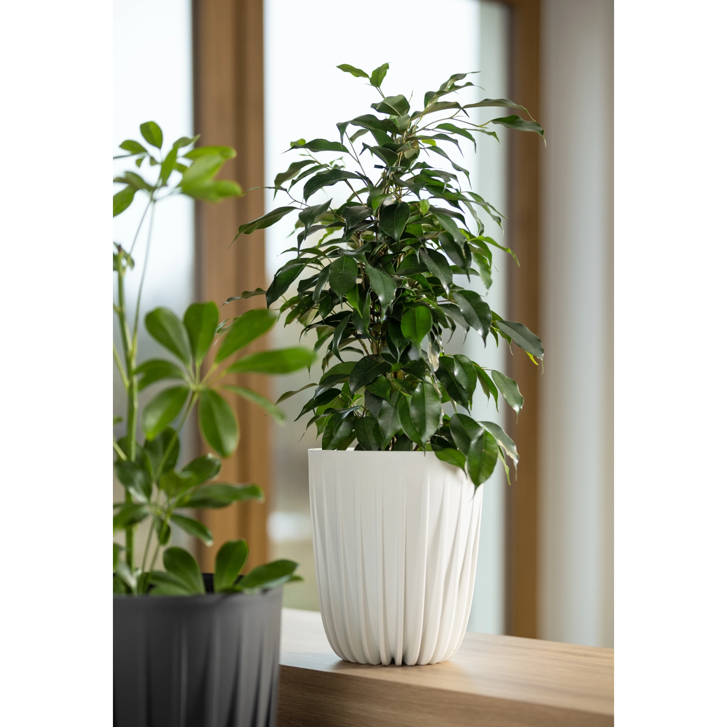 A függőleges bordázat elegáns megjelenést kölcsönöz a cserépnek, amely remekül illik a modern és skandináv belső terekhez.