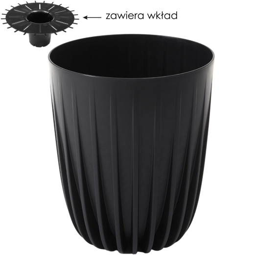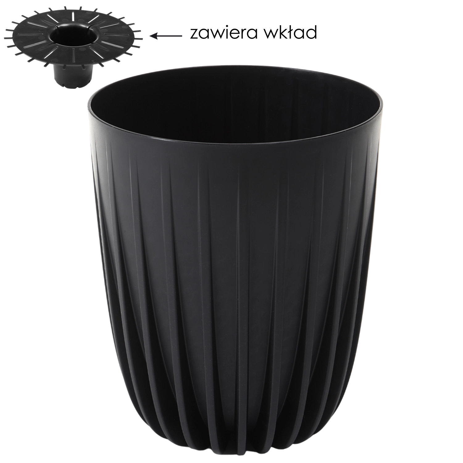A fekete színű Mira virágcserép időtálló megjelenést ötvöz a praktikus funkciókkal. 100% újrahasznosított műanyagból készül, ezért környezetbarát, ugyanakkor ellenáll a mechanikai sérüléseknek, a nedvességnek és a fagynak. A vertikális bordák és a keskenyedő forma remekül illik a modern és skandináv enteriőrökhöz, erkélyre és teraszra is.