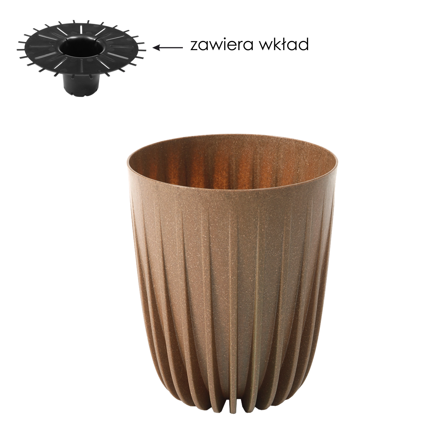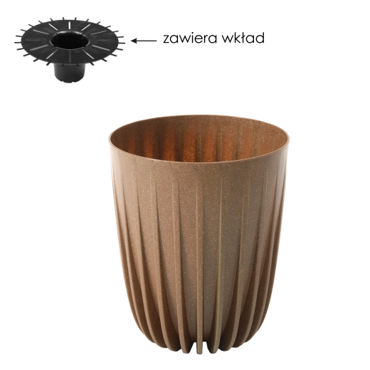 A praktikus belső betét nyílásokkal megkönnyíti a felesleges víz elvezetését és segít megelőzni a túlöntözést. A faforgácsot tartalmazó, ellenálló műanyag könnyű, tartós, és időjárás- valamint mechanikai igénybevétellel szemben is ellenálló, így a cserepet bátran használhatja otthon, erkélyen vagy teraszon.