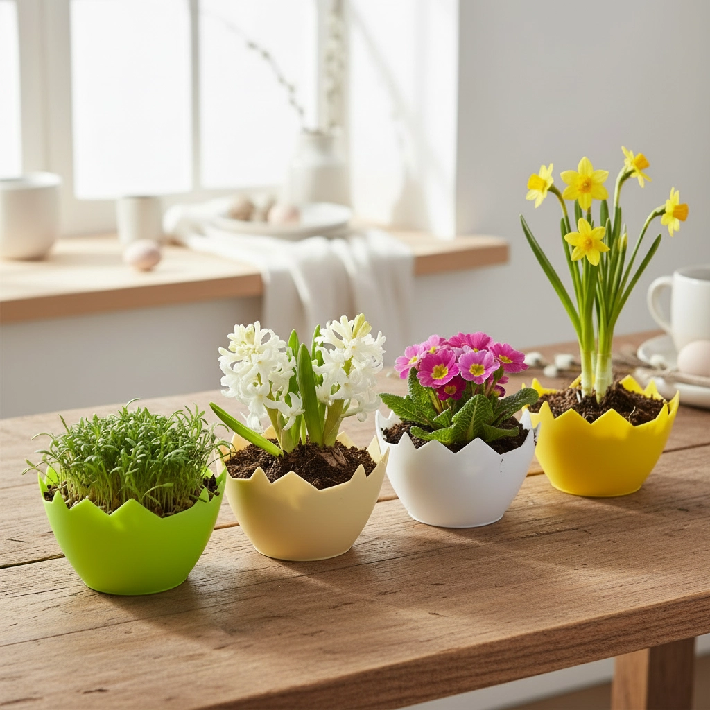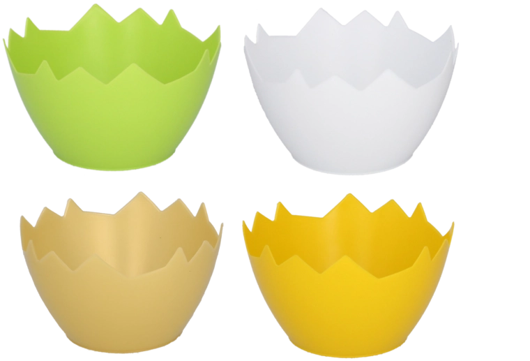Teremtsen otthonában vagy a teraszon játékos hangulatot a repedt tojáshéj formájú dekoratív kaspóval. A könnyű és tartós műanyag kevés karbantartást igényel és ellenáll a nedvességnek, így ideális a mindennapos használatra. Kompakt méreteinek köszönhetően remekül mutat ablakpárkányon, étkezőasztalon és polcon is.
