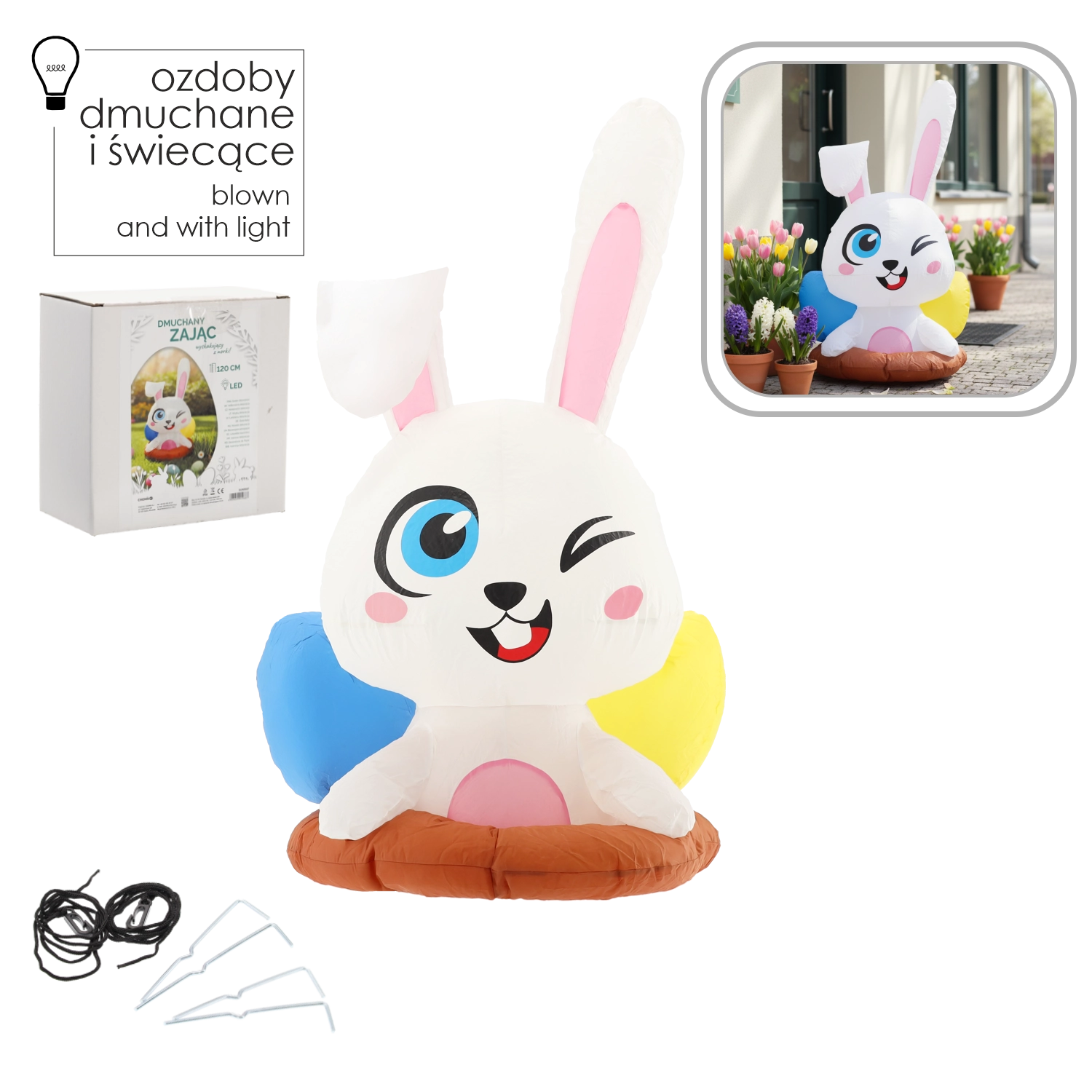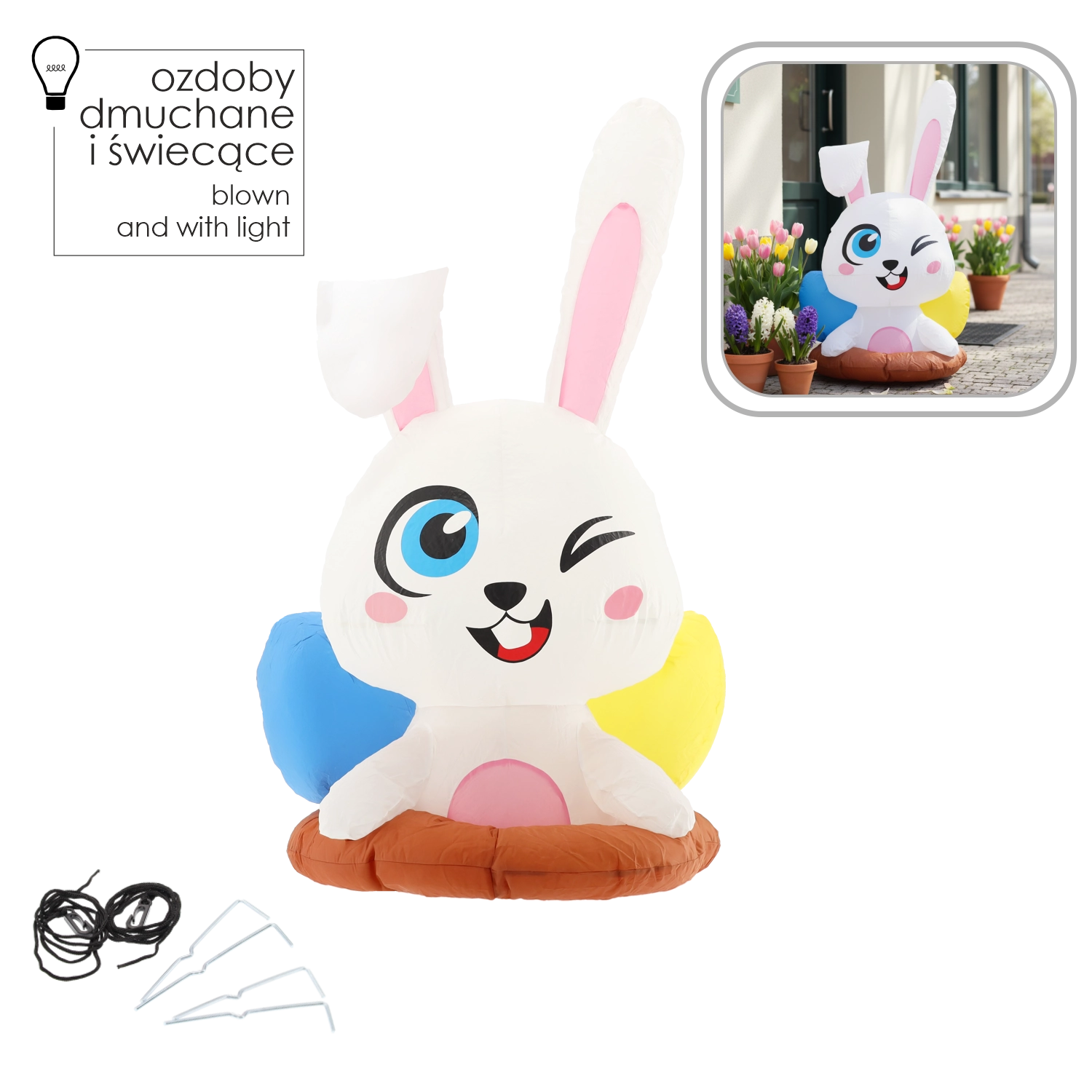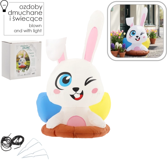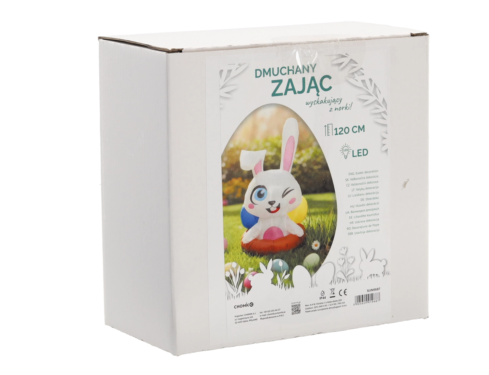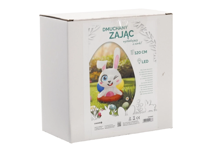 Ez a vidám, üregből kikukucskáló felfújható nyuszi ideális húsvéti dísz otthonra és kertbe egyaránt. Az integrált fehér LED sötétedés után szépen ragyog, és felkelti a gyerekek és felnőttek figyelmét. A könnyű szerkezet és a mellékelt tartozékok gyors telepítést és stabil rögzítést tesznek lehetővé.