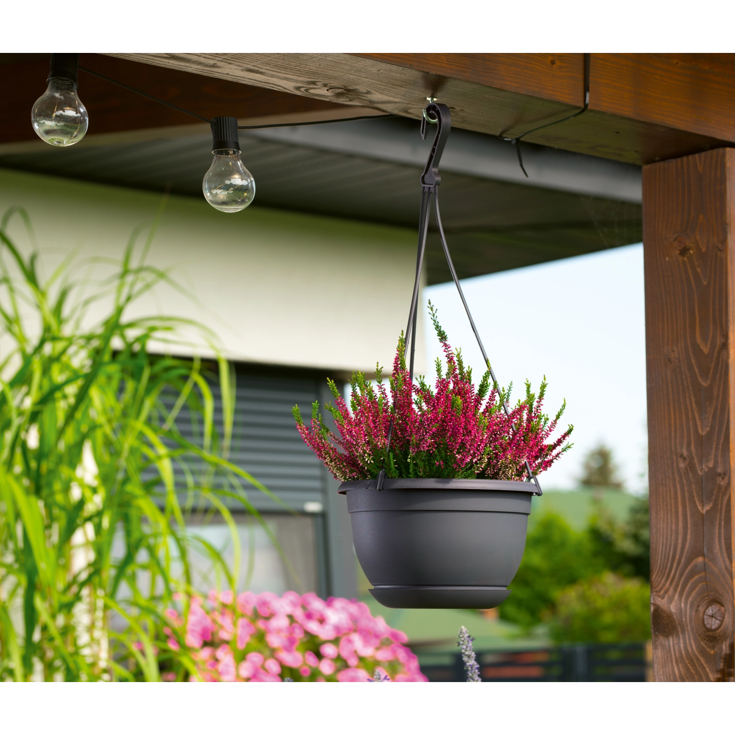 A 27 cm-es, antracit színű Malta függő virágcserép praktikus és stílusos megoldás fűszernövények, dísznövények és csüngő fajták neveléséhez. A könnyű és tartós műanyag egyszerű kezelhetőséget és hosszú élettartamot biztosít, míg a matt felület modern hatást kelt, és könnyen kombinálható különböző berendezési stílusokkal.