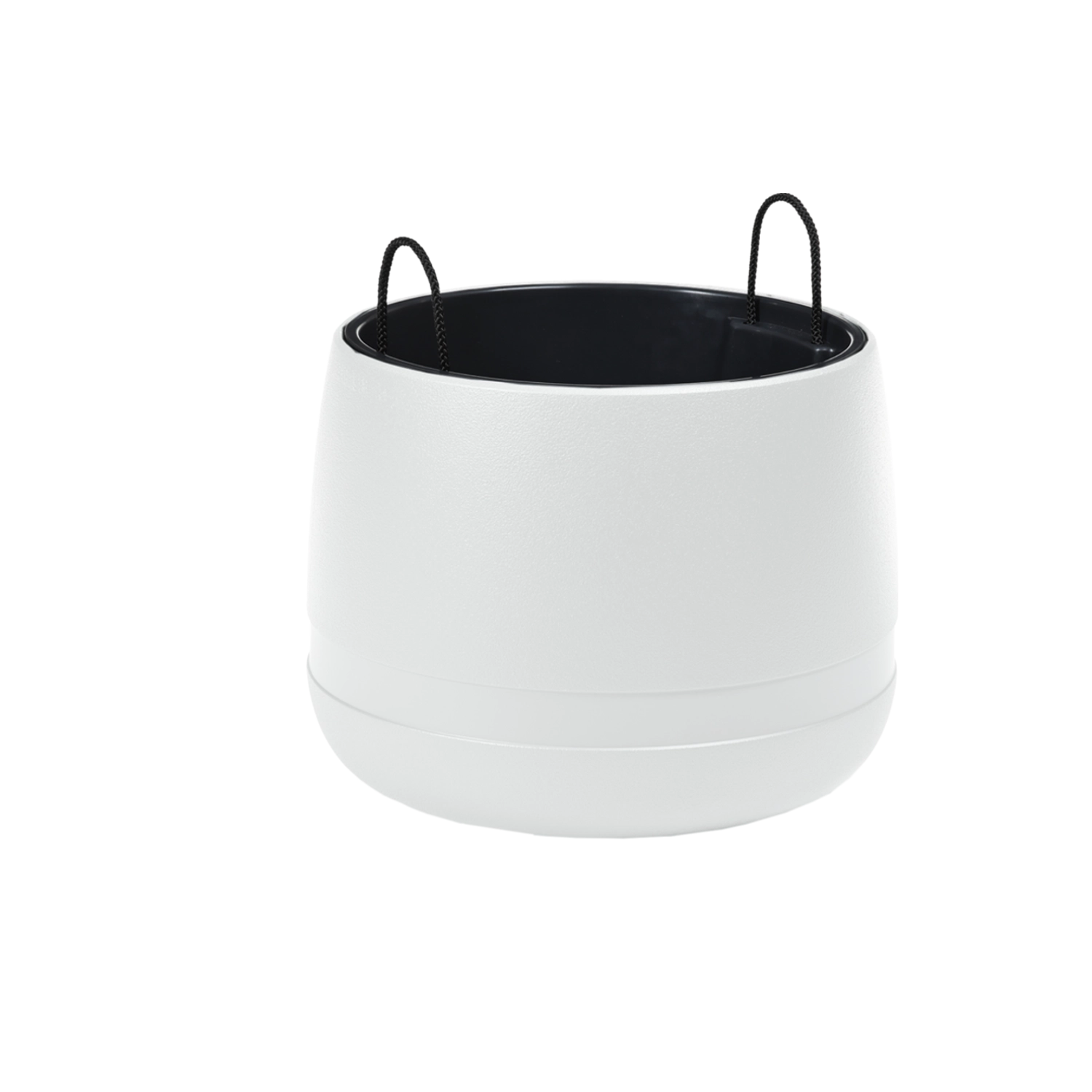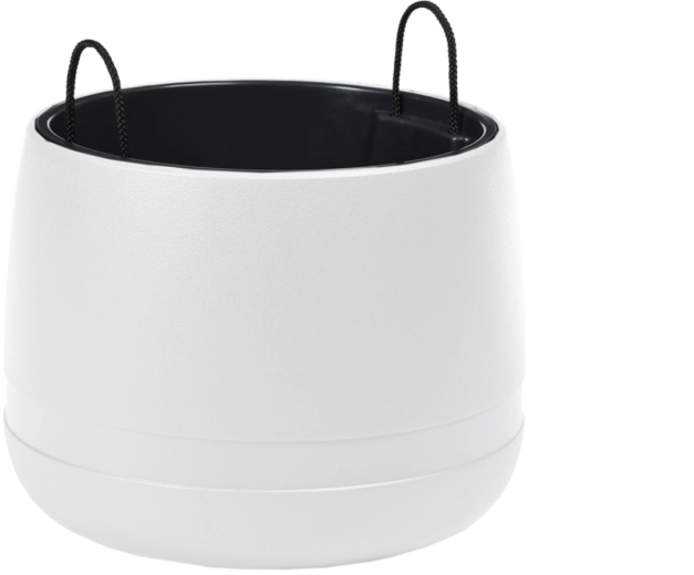 A függesztő kötelekkel való kompatibilitásnak köszönhetően a virágtartó függesztett változatként is használható – ideális erkélyre, pergolára vagy teraszra.