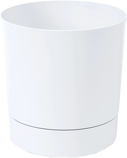 Elegáns AURA virágtartó alátéttel, 28 cm átmérővel, fehér színben, ideális beltéri és kültéri növényneveléshez. Minőségi műanyagból készült, matt felülettel a modern megjelenésért és a könnyű tisztításért. A fagy- és időjárásállóságnak köszönhetően egész évben használható. Az integrált alátét vízelvezető nyílásokkal biztosítja a megfelelő drenázsrendszert, és megóvja a gyökereket a túlöntözéstől.