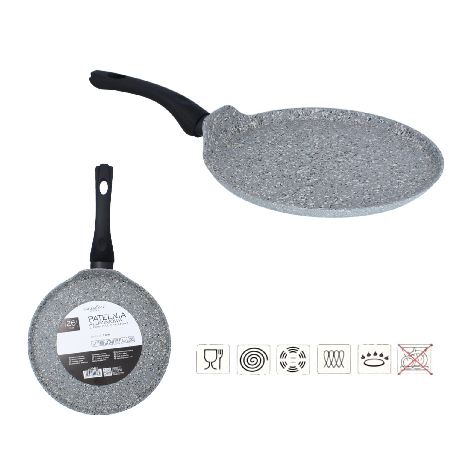 26 cm-es alumínium palacsintasütő gránit tapadásmentes felülettel, indukcióhoz