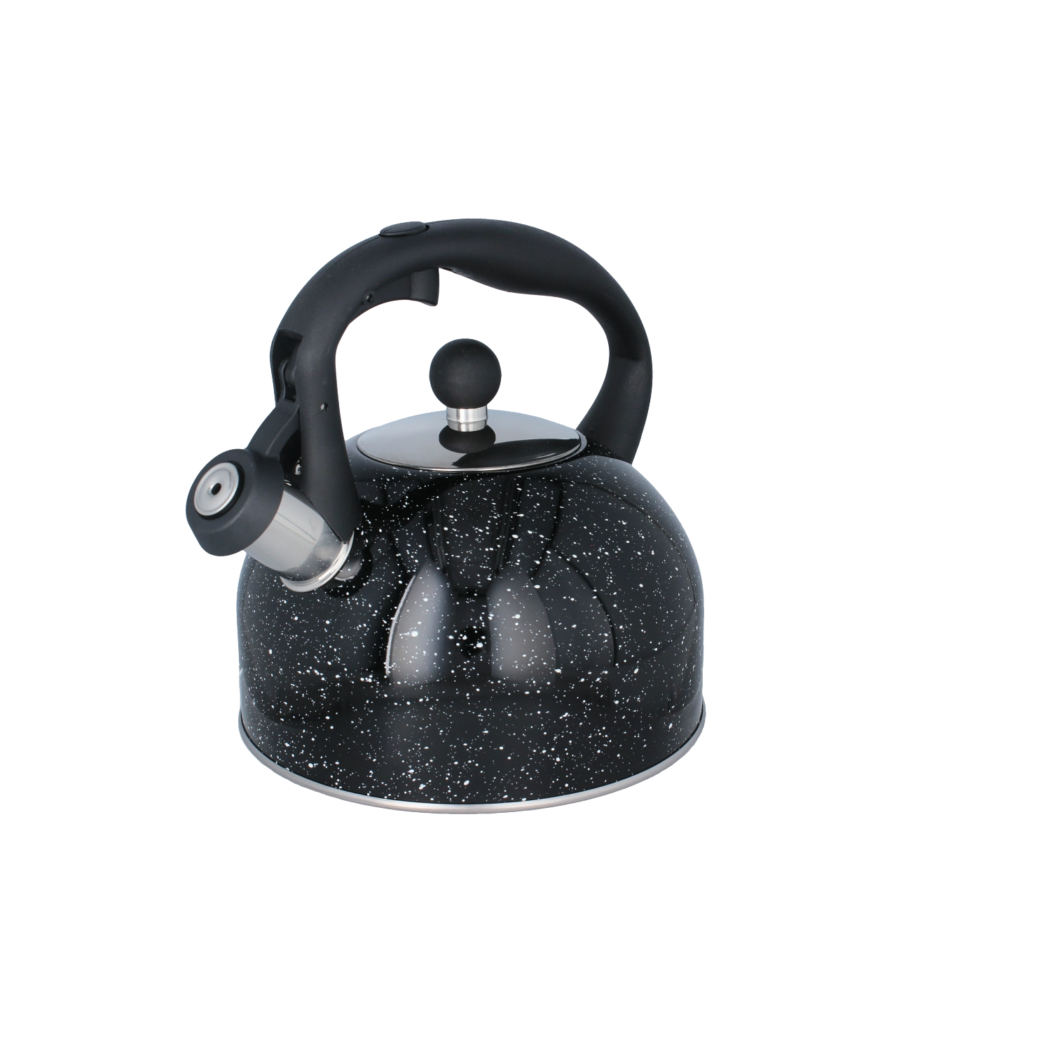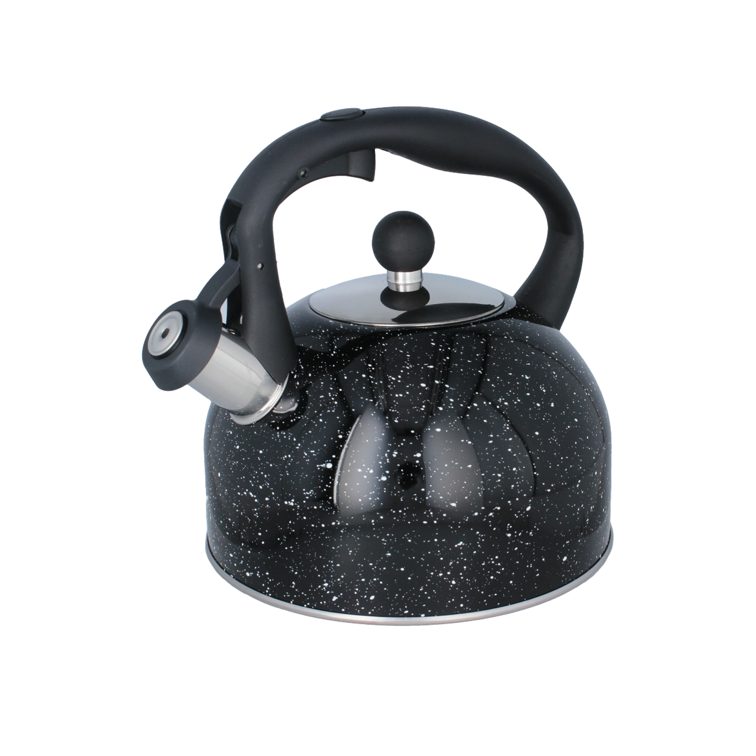 Ez a vízforraló ötvözi a modern dizájnt és a megbízható teljesítményt. A 201-es típusú rozsdamentes acélból készült, 0,3 mm vastag korpusz tartósságot és hosszú élettartamot biztosít. A külső márványhatású felület elegáns fekete színben, fehér pöttyökkel egyedi stílust ad konyhájának, míg a belső szatén csiszolás (satin polish) megkönnyíti a tisztítást.