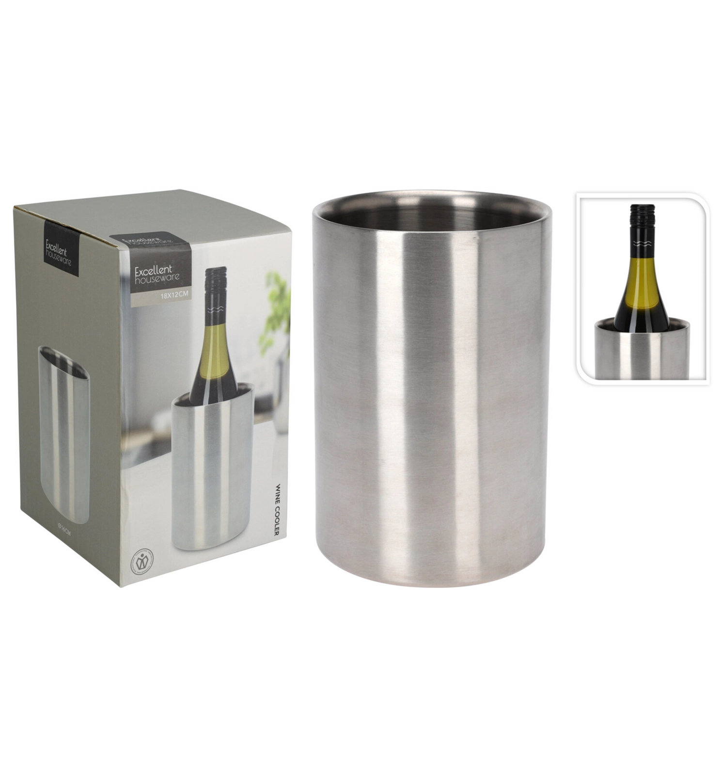Az EXCELLENT HOUSEWARE elegáns, duplafalú borhűtő vödre a rozsdamentes acélból készült, szigetelő, kétfalú kialakításnak köszönhetően tovább hűvösen tartja italát. A minimalista ezüst dizájn bármely enteriőrbe illik, a mosogatógépben moshatóság pedig megkönnyíti a karbantartást.