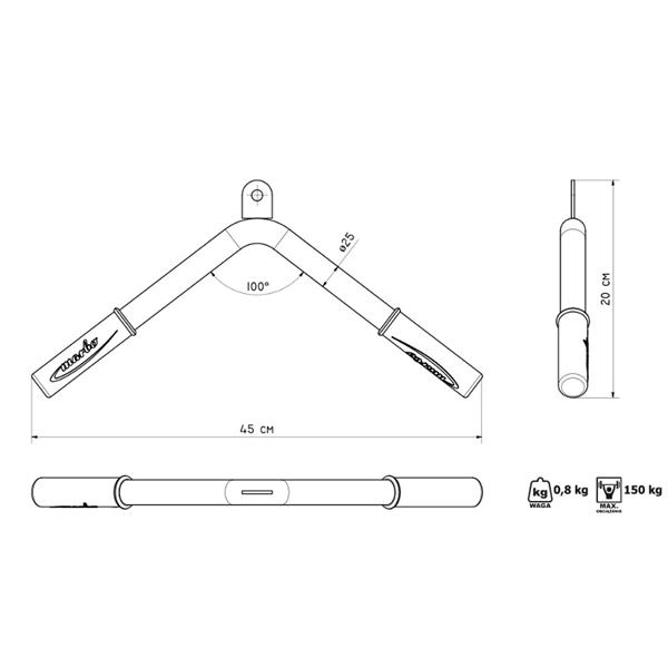 Emeld magasabb szintre a kar-edzésed a MARBO tricepsz adapterrel. A 40 × 40 mm-es profilú, robusztus szerkezet és a praktikus, 45 cm-es hossz stabilitást és kényelmet nyújt a gyakorlatok precíz kivitelezéséhez. A 25 mm-es markolatátmérő kényelmes fogást biztosít és csökkenti a csúszást.