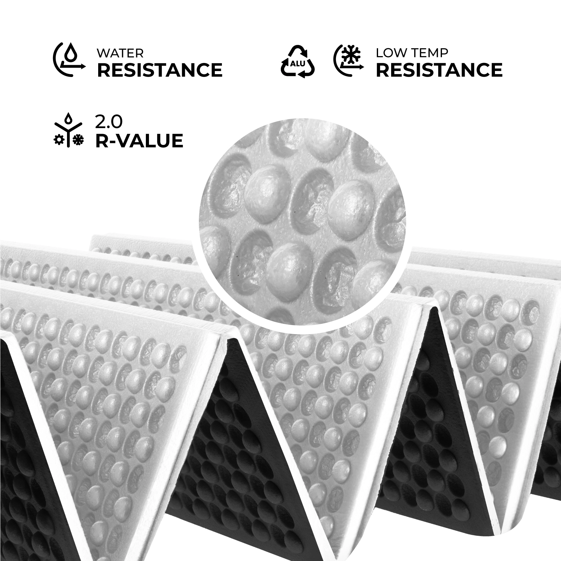 A reflexiós réteg okosan működik az elhelyezéstől függően: fóliás oldalával felfelé visszaveri a hőt a test felé, lefelé fordítva szigetel a talaj hidegétől. Ennek köszönhetően a derékalj ideális három évszakra – a hűvösebb sátoros éjszakáktól a nyári bivakolásig a szabad ég alatt.