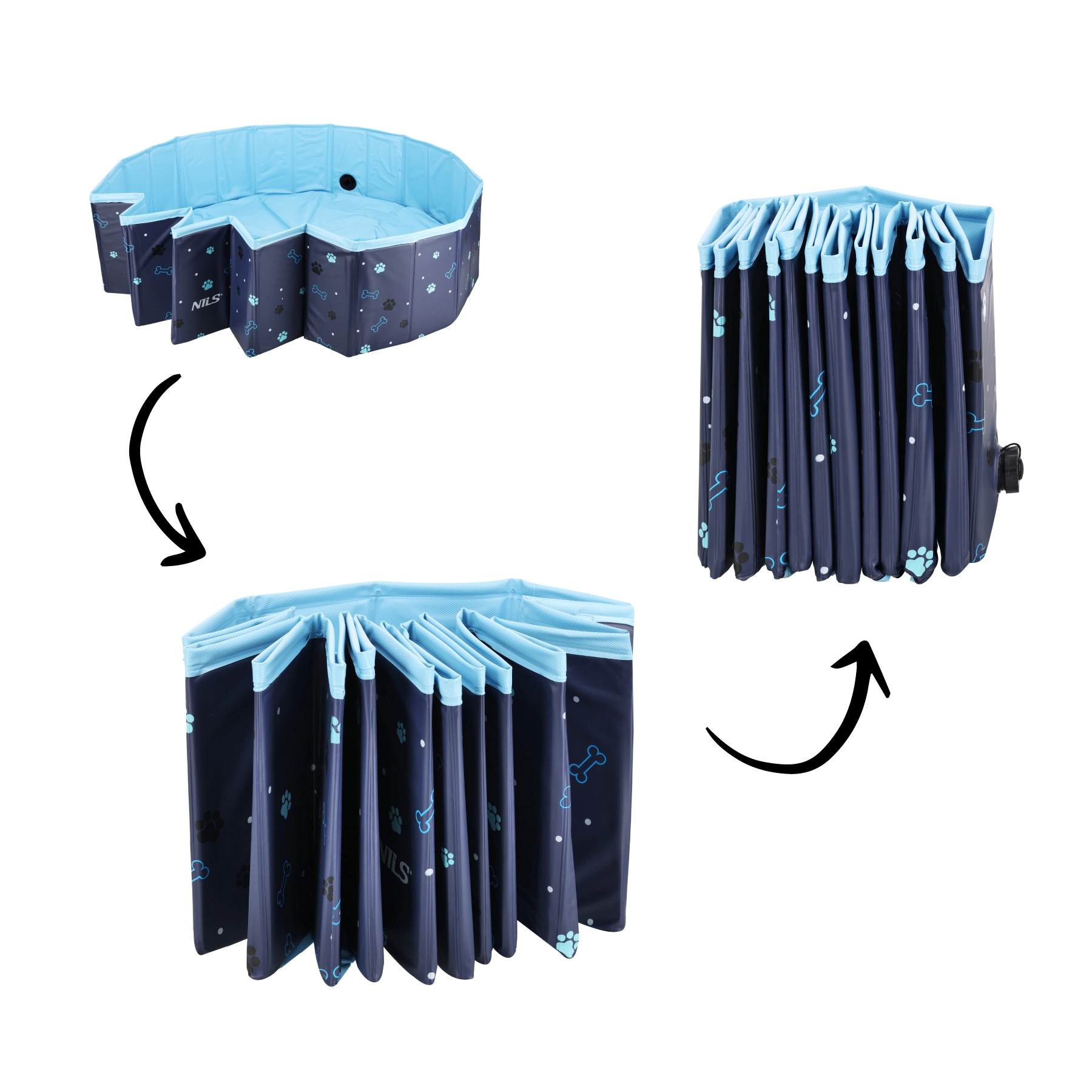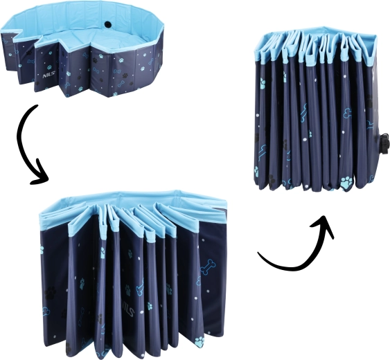 A NILS összecsukható kutyamedence ideális felfrissüléshez séta után, valamint nyári vízi játékokhoz a kertben, teraszon vagy erkélyen. A 120 cm-es átmérő bőséges helyet biztosít még nagyobb kutyáknak is, miközben a medence továbbra is kompakt és könnyen hordozható. A strapabíró PVC-nek és az MDF megerősítő paneleknek köszönhetően a medence stabil, erős és a mindennapos használatra is felkészült.