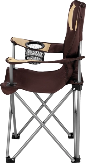 A kényelmet az állítható kartámaszok és a jobb oldali karfán elhelyezett praktikus pohártartó szolgálja. A széket könnyedén kompakt méretre csukhatja, és a mellékelt vállpántos hordtáskában tárolhatja – ideális a gyors szállításhoz és tároláshoz.