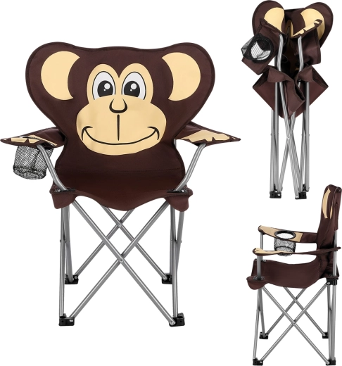 Könnyű és stabil gyermek kempingszék majmos mintával vízparti kirándulásokra, horgászathoz és fesztiválokra. Kínál tartós szerkezetet, 50 kg teherbírást, állítható kartámaszokat és praktikus italtartót. A gyors összecsukásnak és a vállpántos hordtáskának köszönhetően ideális utazáshoz.