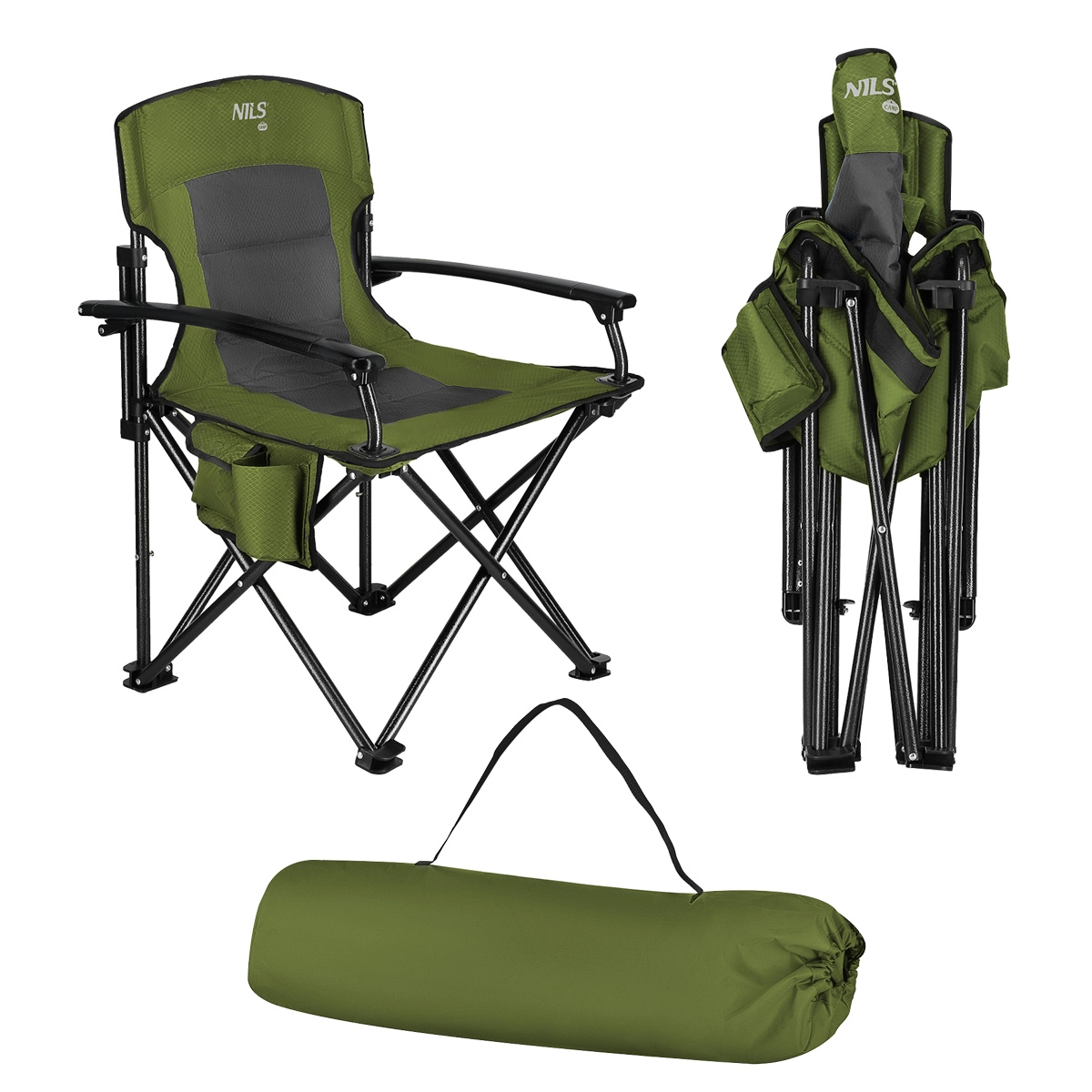 Élvezze a kényelmet bárhol a természetben. A NILS Camp összecsukható szék kárpitozása dupla rétegű Oxford 600D poliészter puha béléssel, így hosszabb időre is kényelmes ülést biztosít. A teljes méretű kartámaszok megkönnyítik a leülést és a felállást, oldalt pedig kör alakú italtartó és fedeles zseb található telefon, pénztárca vagy apróságok számára.