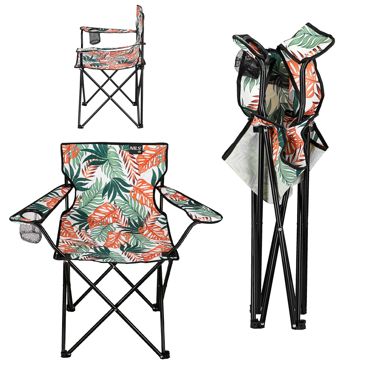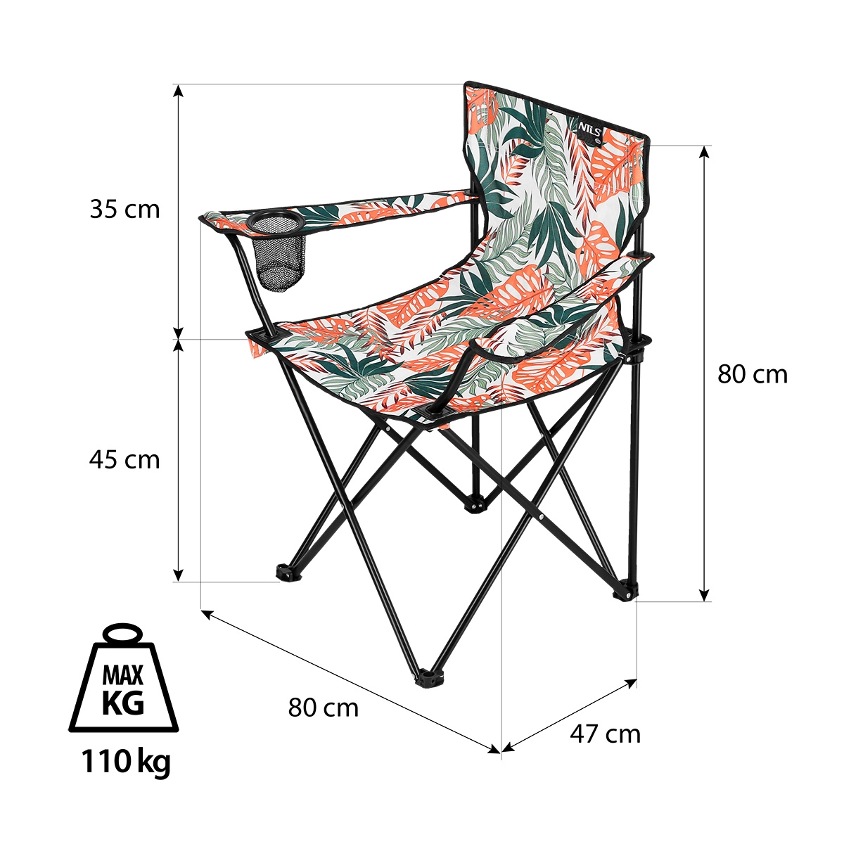 A maximális kényelem érdekében a szék állítható kartámaszokkal és a jobb oldali kartámaszban hálós pohártartóval van felszerelve. A négyzet alakú műanyag lábvégződések javítják a stabilitást és megakadályozzák a süllyedést a puha felületeken. Használat után a szék egyszerűen kompakt méretre hajtható, így tökéletes utazáshoz, kempingezéshez és horgászathoz.
