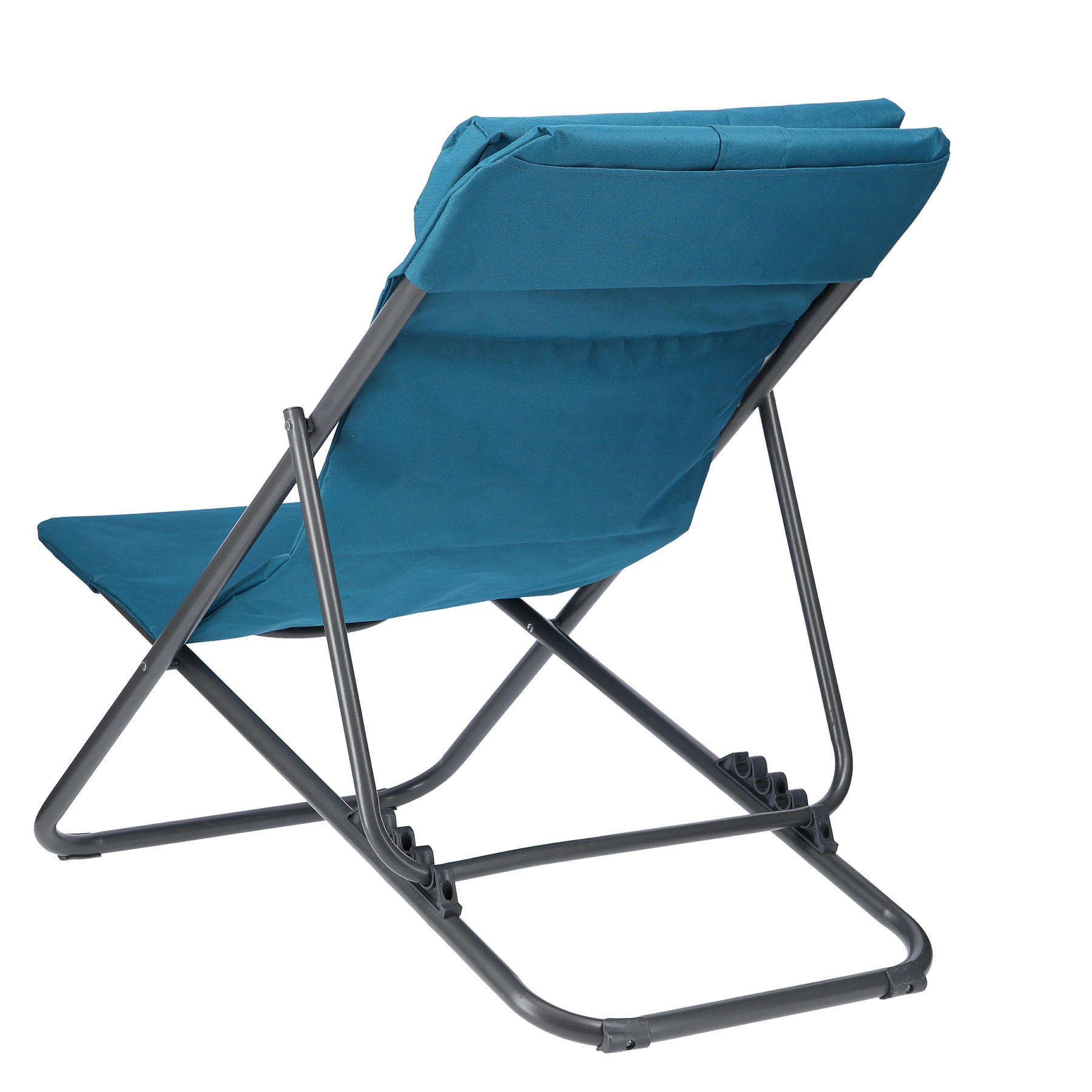 Az integrált párna növeli a komfortot, míg a csúszásgátló lábak stabilitást adnak különböző felületeken. A nyugágy gyorsan, kompakt méretre hajtható, így egyszerűen elfér az autóban vagy a szekrényben. A felület könnyen tisztítható, amit a rendszeres kültéri használat során különösen értékelni fog.