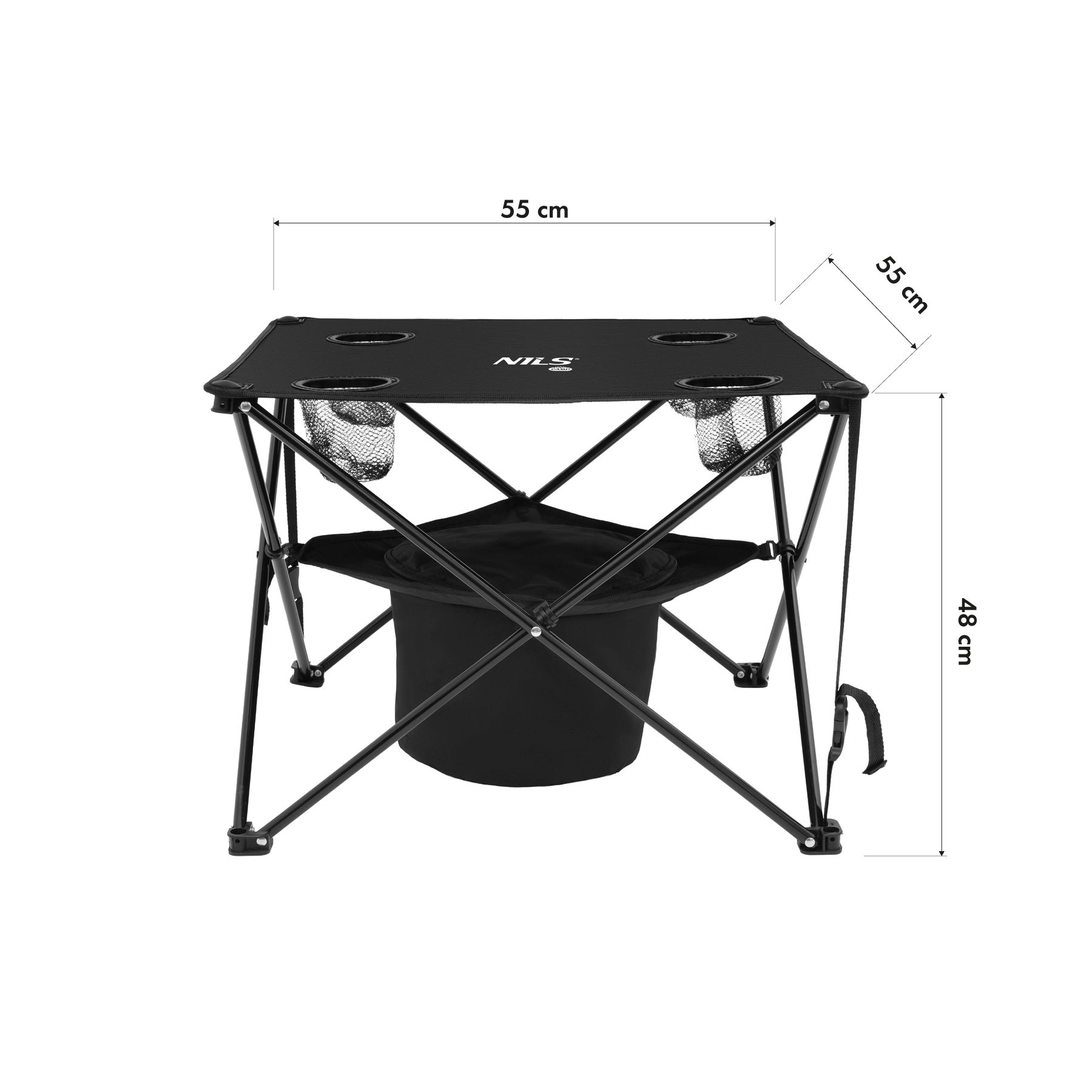 A praktikus NILS Camp kempingszett egy összecsukható asztalt és két kényelmes széket kínál kirándulásokhoz, piknikhez vagy vízpartra. Az asztallap alatt integrált hűtőtáska található italok és harapnivalók számára, a lapon pedig négy pohár- vagy palacktartó. A masszív acélváz, az ellenálló anyagok és az összecsukva kompakt méretek révén a szett stabil, könnyen hordozható és ideális kempingezéshez.