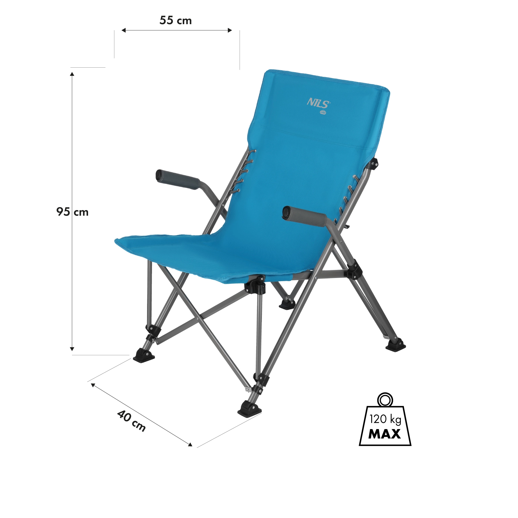 A könnyű és tartós, összecsukható NILS Camp kempingszék maximális kényelmet, stabil acél vázat és kompakt méreteket a könnyű szállításhoz kínál. Ideális kempingezéshez, horgászathoz, fesztiválokra és a kertbe.