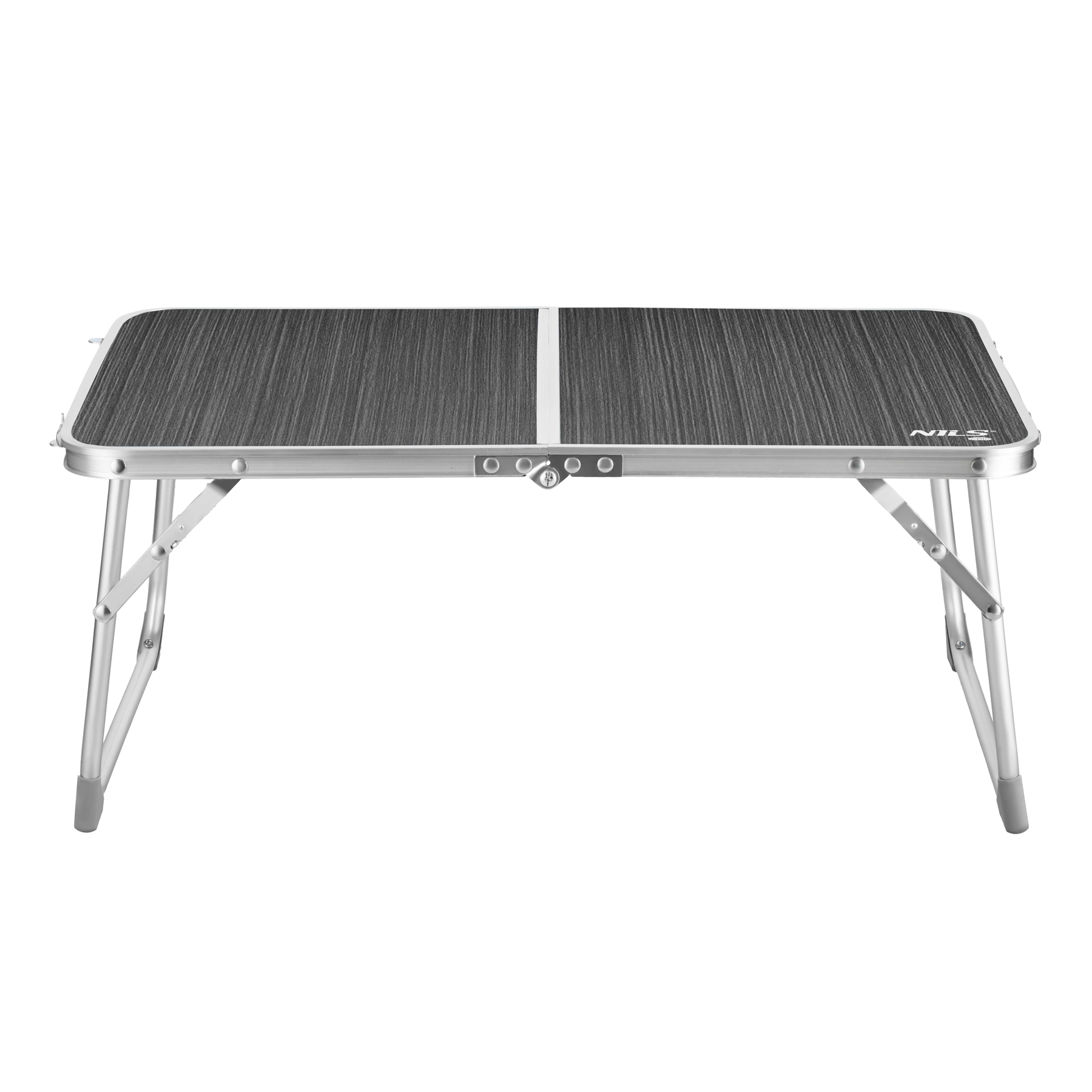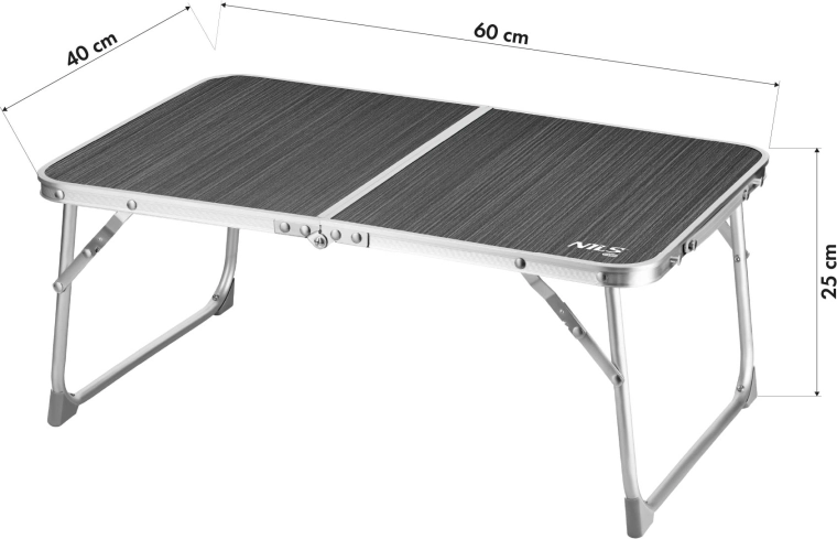 A sötétszürke kivitelű összecsukható kempingasztal kényelmes használatra készült a természetben és otthon egyaránt. A könnyű alumínium szerkezetnek köszönhetően könnyen hordozható, míg az MDF lap ellenáll a nedvességnek és a karcolásoknak. A praktikus 60 × 40 × 25 cm méret elegendő helyet ad a tálaláshoz és pakoláshoz, mégis összecsukva szinte bárhová befér.