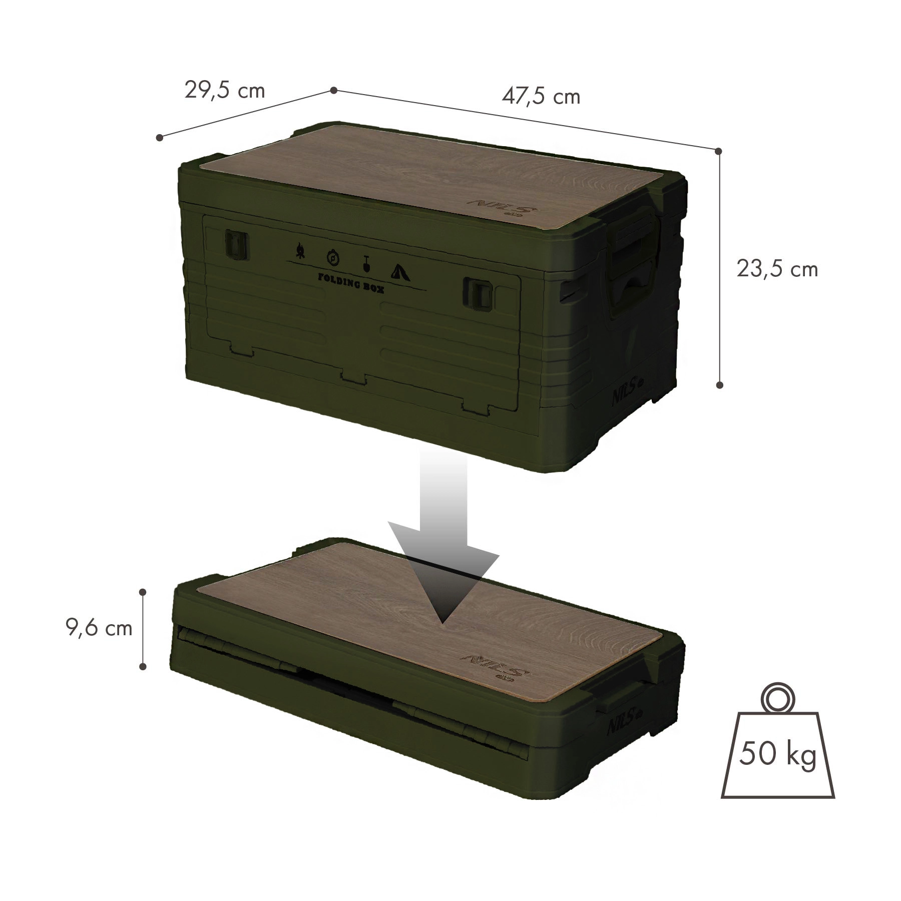 A sokoldalú NILS Camp tárolódoboz kiváló választás kempingezéshez, utazáshoz és mindennapi rendszerezéshez. A levehető fa lap stabil asztalkává vagy munkafelületté alakítja, míg az összecsukható konstrukció helyet takarít meg szállításkor és tároláskor. A tartós polipropilénből készült, erős oldalfalak nehezebb tartalmat is elbírnak, és védelmet nyújtanak felszereléseinek.