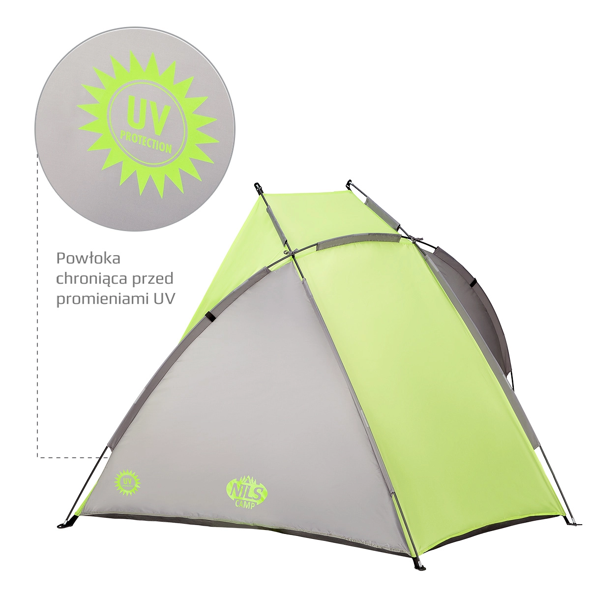 Élvezze az árnyékot és a privát szférát akár a tengerparton, a strandfürdőben vagy a kertben. A NILS CAMP strandsátor hatékony védelmet nyújt a nappal és a káros sugarakkal szemben, így a napon töltött idő kellemes és biztonságos marad. Az anyag kisebb záporoknak is ellenáll, a szellőzést pedig a nyitott elülső kialakítás biztosítja.