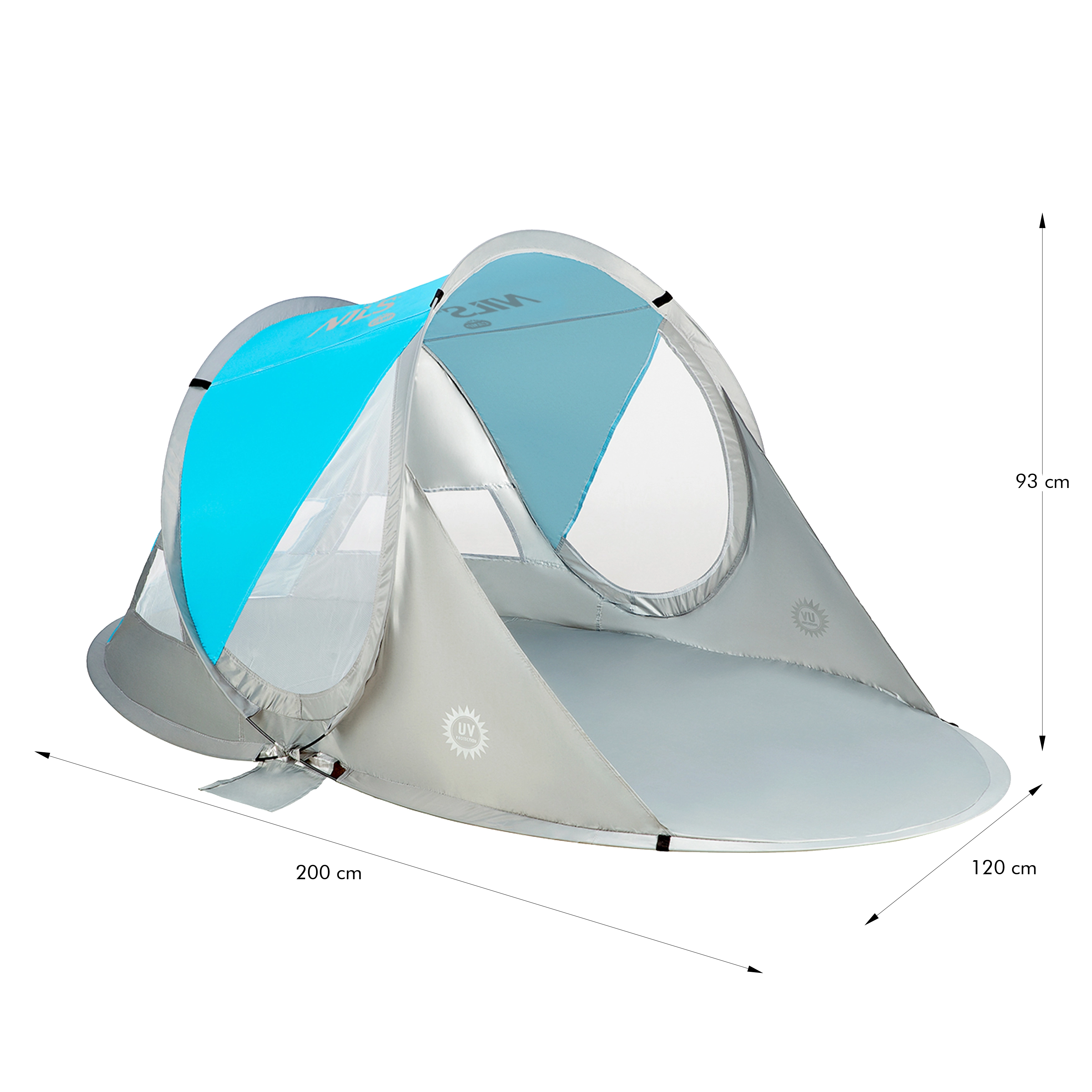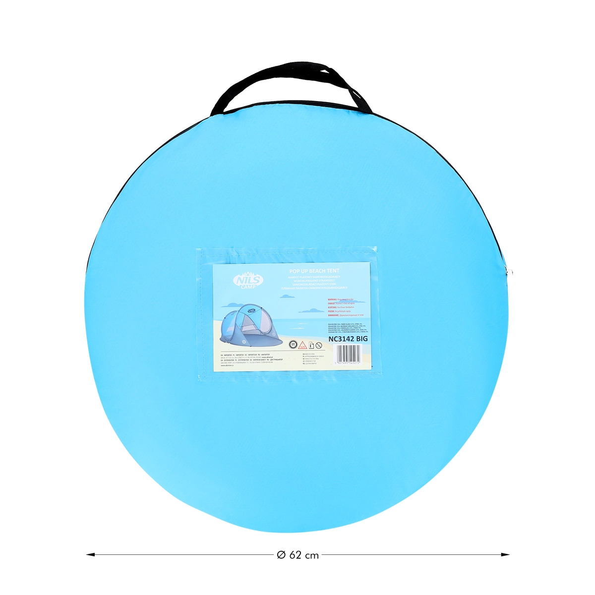 A NILS Camp NC3143 BIG strandsátor ideális választás tengerparti nyaraláshoz, strandfürdőhöz vagy akár a házikertbe. A csomagból kivéve automatikusan feláll, így néhány másodperc alatt megbízható menedéket kap a nap és a szél ellen. A laminált rúd szerkezet és a tartós poliészter ponyva stabilitást és hosszú élettartamot biztosít.