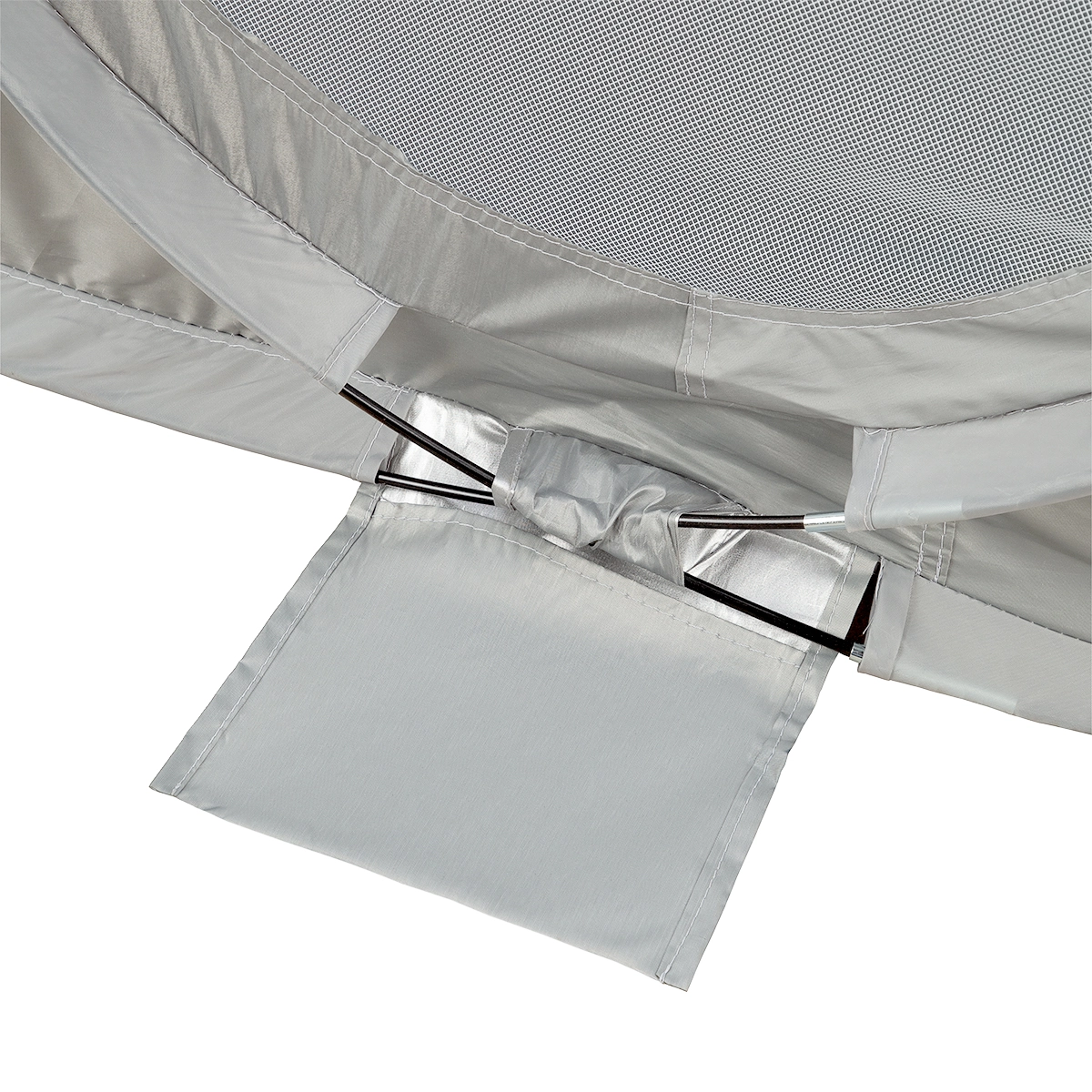 96%-os UV visszaverő képességének köszönhetően a sátor hatékony védelmet nyújt a káros napsugárzás ellen. A 200 × 120 cm-es alapterület és a 93 cm-es magasság elegendő helyet ad üléshez és a gyerekek játékához. Használat után a sátor egy egyszerű mozdulattal visszahajtható a 60 cm átmérőjű, kompakt tokba – ideális a kényelmes szállításhoz és tároláshoz.