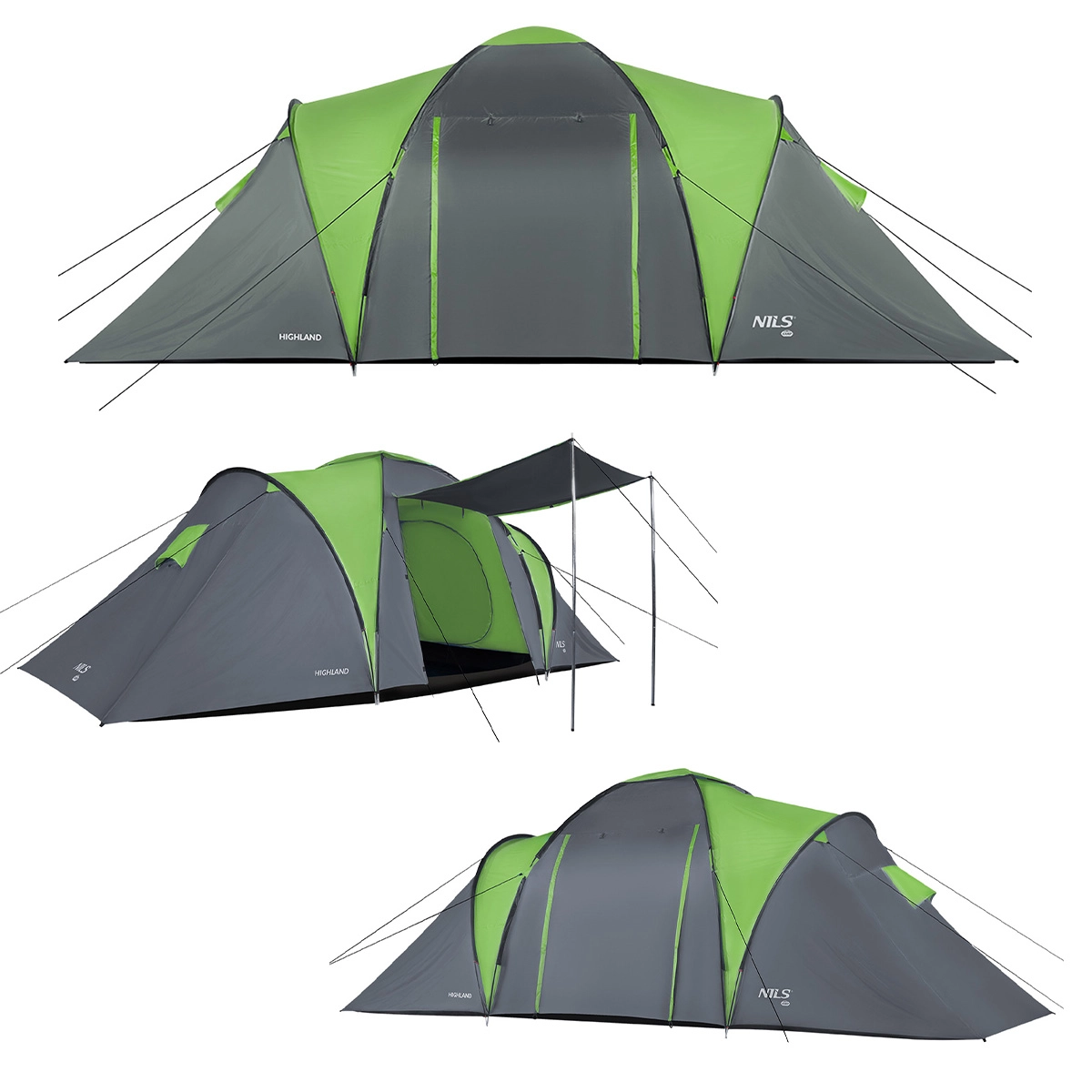 Élvezze a kényelmet és a biztonságot kempingezés közben a NILS Camp Highland családi sátorral. A két rétegű felépítés, a minőségi anyagok és a külső ponyván és a padlón egyaránt 4000 mm H2O vízoszlop-érték védelmet nyújt eső és szél ellen. Az UV-álló szövet és az öntömörítő (önkioltó) kezelés növeli a sátor biztonságát és élettartamát. A szúnyoghálóknak, szellőzőnyílásoknak és légáteresztő hálófülkéknek köszönhetően belül kellemes a klíma, páralecsapódás nélkül.