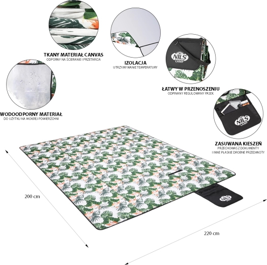 • Nagy méret – 200 × 220 cm családi piknikhez és pihenéshez.