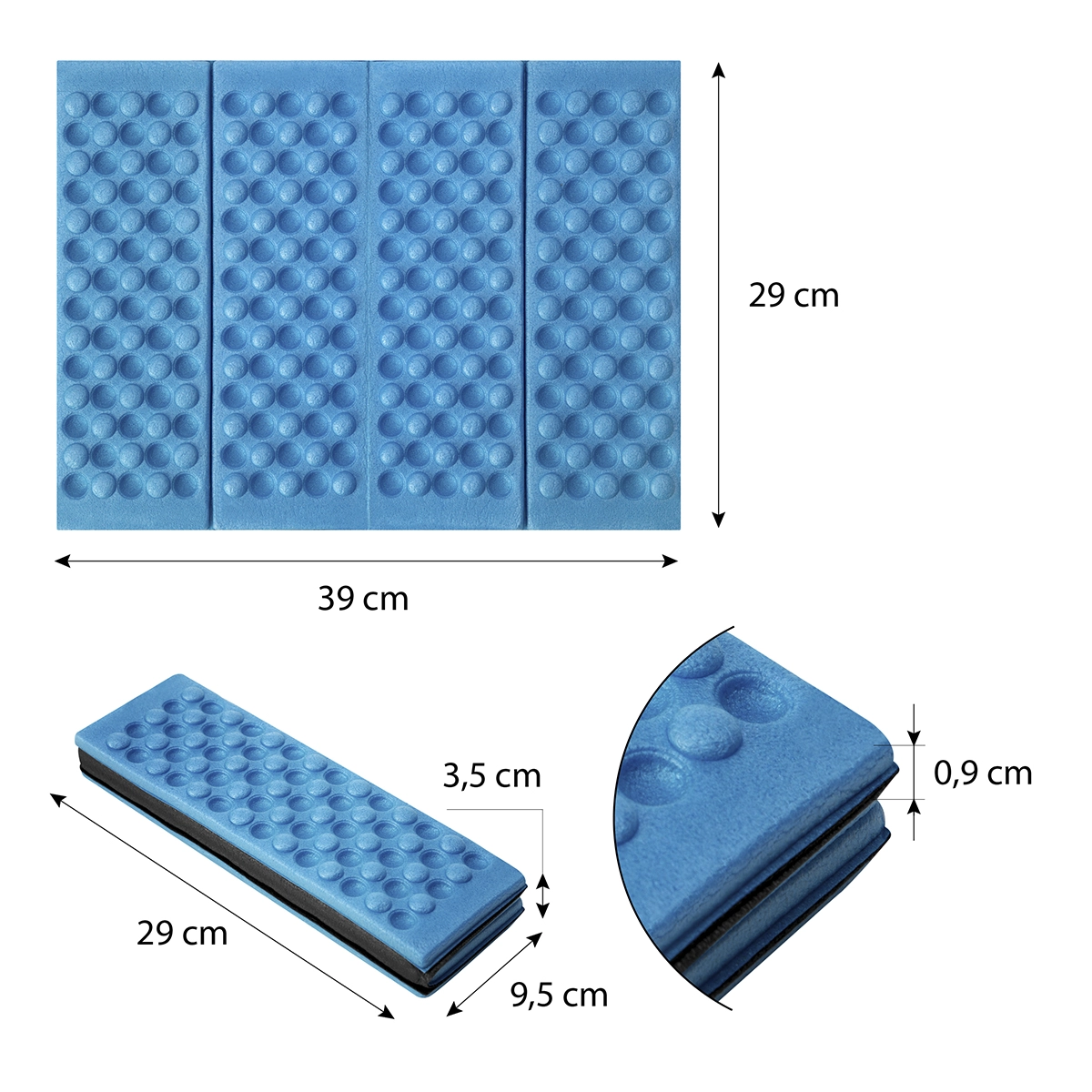 Ez az összecsukható hab ülőlap megbízható társ kempinghez, túrázáshoz, horgászathoz és fesztiválokra. Az XPE anyag alacsony tömeget, nagy tartósságot és kiváló szigetelést biztosít a hideggel és nedvességgel szemben. Tagolt felületének köszönhetően egyenetlen terepen is kényelmes az ülés.
