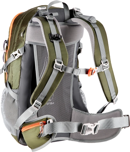 A rendszerezést támogatják a két, kétirányú cipzáras rekesz, az első zseb, a hálós oldalzsebek a palackok számára és a derékpánt zsebei az apróságoknak. A külső fülek és hurkok a túrabotokhoz, valamint a kompressziós pántok biztosan a helyükön tartják a felszerelést.