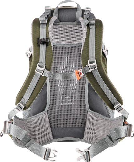 A szellőző hátpanel és a párnázott vállpántok állítható mellhevederrel és derékpánttal kényelmet, hőelvezetést és biztos illeszkedést nyújtanak még nehéz terepen is.