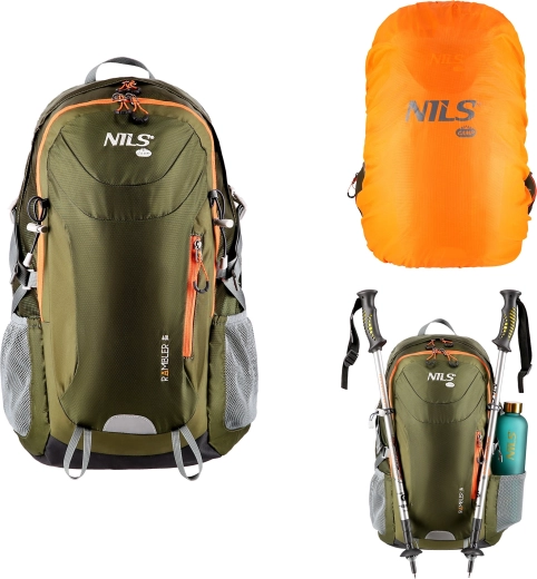 A vízlepergető nejlon és az integrált esővédő óvja a tartalmat zord időben. A botrögzítő fülek és hurkok, valamint a kompressziós pántok megkönnyítik a felszerelés hordozását.