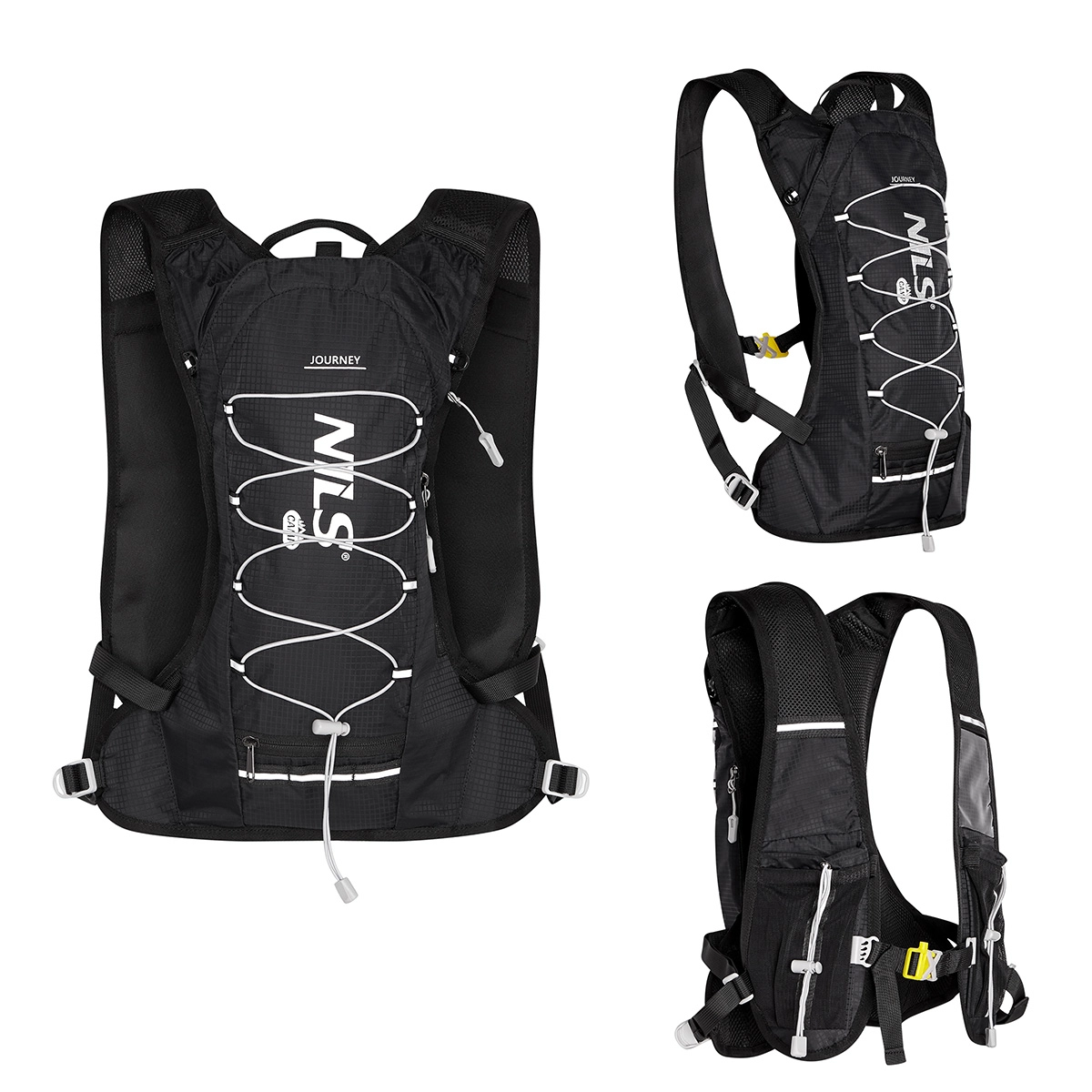 A vállpántokon átvezetők a cső számára, hálós zsebek és átlátszó kis zseb található az azonosító kártyának vagy rajtszámnak. A magasságában állítható, síppal ellátott mellheveder stabilizálja a hátizsákot futásnál és kerékpározásnál.