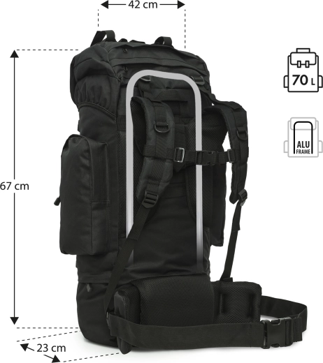 Megbízható hátizsákot keresel többnapos trekkhez, bushcrafthoz vagy survivalhez? A NILS Camp Eagle 70 l a nagy űrtartalmat átgondolt felszereltséggel ötvözi. A tartós, 100% poliészter PVC bevonattal és a masszív, mégis könnyű alumínium váz stabilitást és hosszú élettartamot nyújt a zord terepen is. Az ergonomikusan formázott hát rész az állítható pántokkal együtt segít egyenletesen elosztani a súlyt, növelve a komfortot hosszú menetek során.