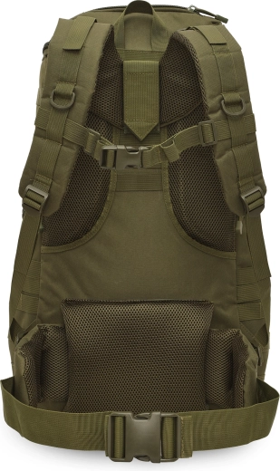 Az alapanyag strapabíró, PVC bevonatú poliészter, amely jobban ellenáll a kopásnak és a nedvességnek. A mell- és derékpánt, valamint a formázott hátkialakítás növeli a kényelmet és biztosítja, hogy a hátizsák stabilan a helyén maradjon. A praktikus külső hevederek és fülek lehetővé teszik a derékalj, túrabotok vagy hálózsák rögzítését, míg a kiegészítő zsebek rendet tartanak az apróságokban és elektronikában.