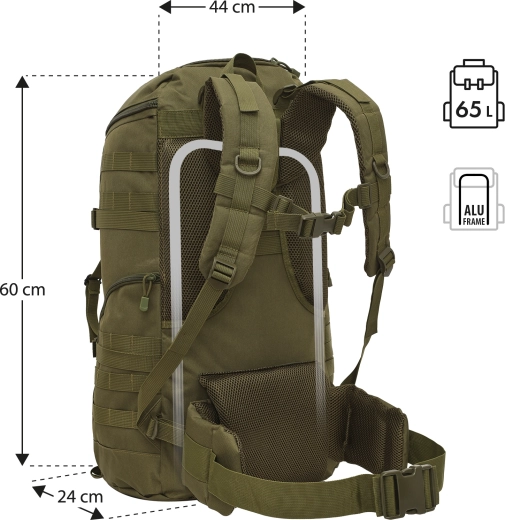 A taktikai stílus kedvelőinek té pőzáras felületek állnak rendelkezésre a személyre szabáshoz (felvarrók nem tartozékok). A mindössze 1,4 kg-os tömegnek és a 65 l-es térfogatnak köszönhetően megbízható hátizsák többnapos túrákhoz és intenzív szabadtéri tevékenységekhez.