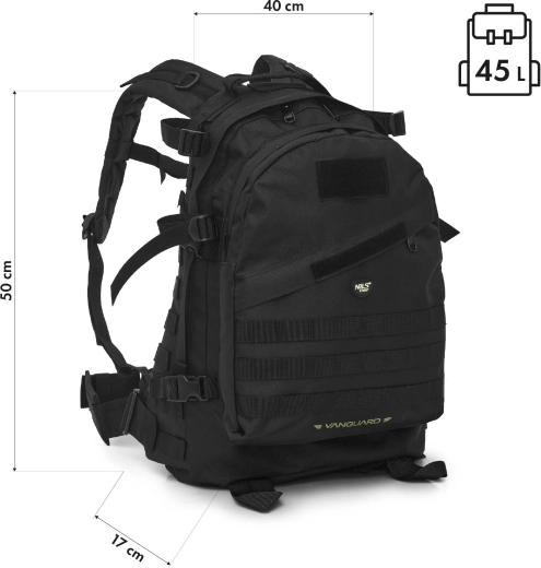 Megbízható hátizsákot keres mindennapi használatra és terepre is? A NILS Camp Vanguard ötvözi a funkcionalitást, a könnyű súlyt és a taktikai megjelenést. A 45 literes térfogat a külső hevederekkel együtt lehetővé teszi derékalj, hálózsák vagy botok rögzítését, így több hely marad a belső térben. A strapabíró, 100% poliészter PVC bevonattal és 210D béléssel hosszú élettartamot és felszerelésvédelmet biztosít.