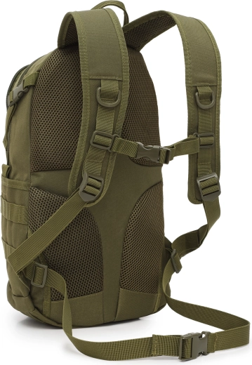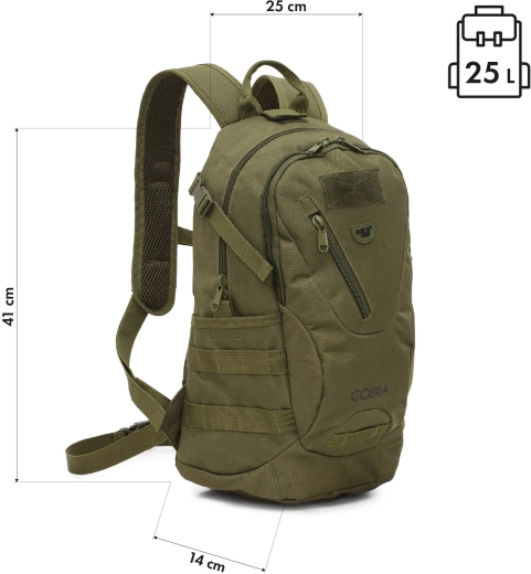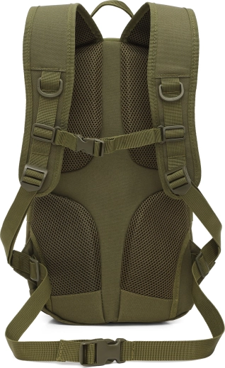 Kompakt taktikai hátizsák 25 l űrtartalommal mindennapi viselethez és outdoor használatra. Kiemelkedik alacsony, 0,6 kg-os tömegével, tartós, PVC bevonatú poliészterrel, 210D béléssel és állítható mell- és derékpánttal a stabilitás és kényelem érdekében. A stílusos MOLLE/velcro panel lehetővé teszi a személyre szabást felvarrókkal.