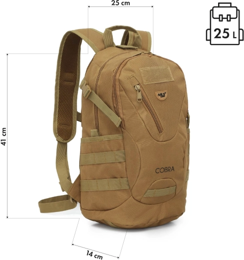 A NILS Camp Cobra kompakt taktikai hátizsák 25 l űrtartalommal ideális városba, kirándulásokra és EDC-nek. Kínál mindössze 0,6 kg-os tömeget, PVC bevonatú, tartós anyagot, stabilitást mellkasi és derékpántnak köszönhetően, valamint személyre szabhatóságot felvarrókkal.