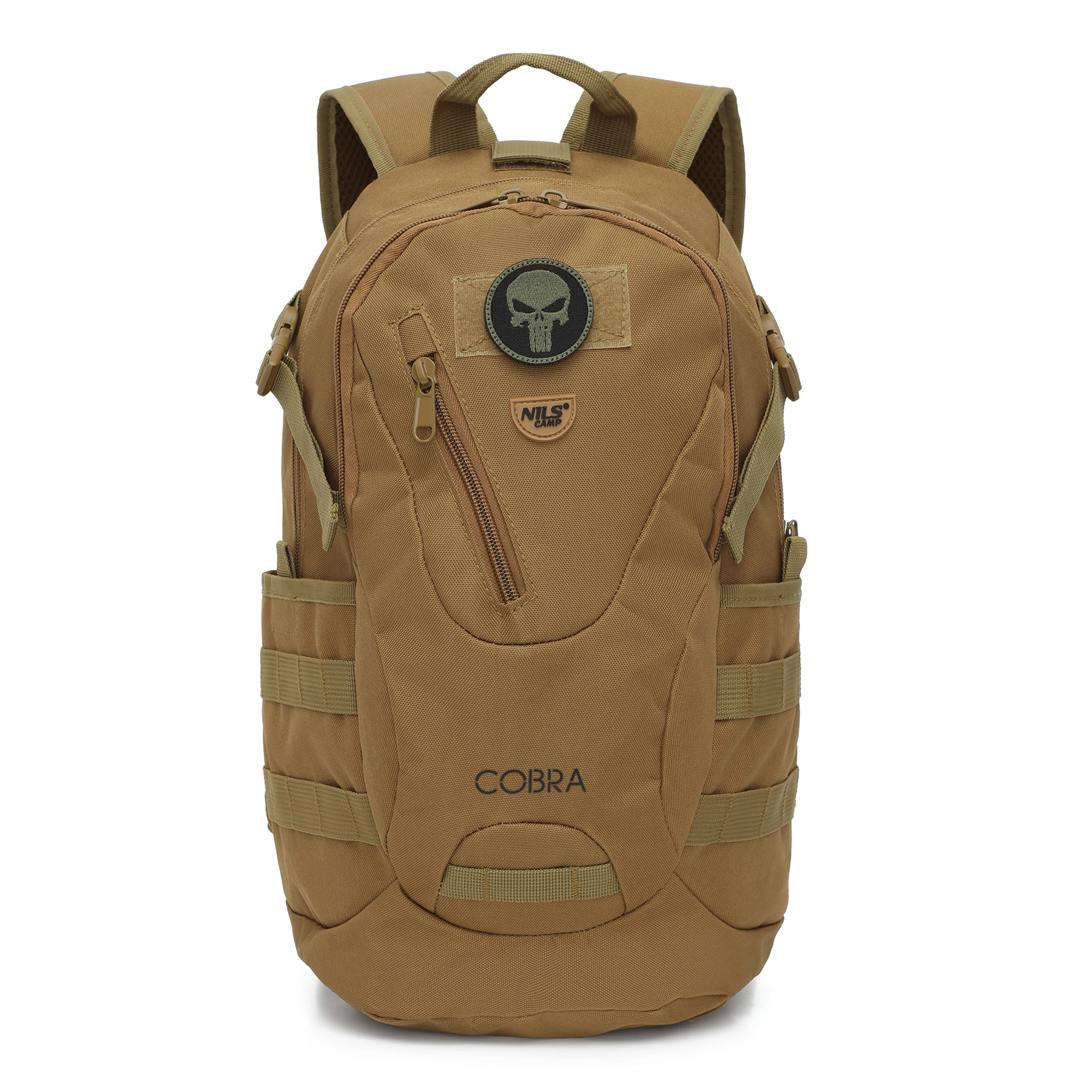Megbízható, könnyű hátizsákot keres mindennapi használatra és szabadtéri tevékenységekhez? A NILS Camp Cobra 25 l ötvözi a modern taktikai megjelenést a kényelmes városi, kerékpáros és kirándulós használatot segítő praktikus megoldásokkal. A 100% poliészter, PVC bevonattal ellátott, strapabíró konstrukció ellenáll a kopásnak és a nedvességnek, míg a 210D belső bélés megerősíti a teljes hátizsákot és védi a tartalmat.