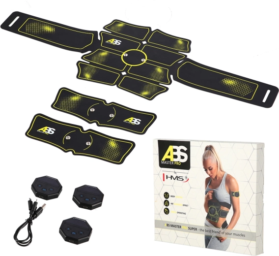 A HMS ABS Master Pro Super egy modern EMS stimulátor, amely finom elektromos impulzusokkal aktiválja az izomrostokat, és hatékony erősítést támogat komoly felszerelés nélkül. A rugalmas elektródáknak és a különálló vezérlőmoduloknak köszönhetően könnyen célozhatod a hasizmokat, valamint a felső és alsó végtagokat. Az áttekinthető LCD-kijelző mutatja a választott módot és az intenzitást, így az edzés mindig a te kezedben van.