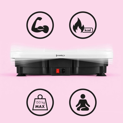 A HMS SVP45 kompakt rezgő platform, amelyet erősítésre, ellazulásra és az általános fittség javítására terveztek otthoni használatra. A célzott rezgések aktiválják a mély stabilizáló izmokat és növelik minden gyakorlat hatékonyságát. A 1–120 sebességtartománynak köszönhetően könnyen személyre szabhatja az intenzitást – a finom stimulációtól a dinamikus edzésig.