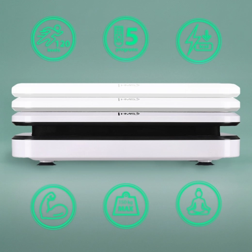 A HMS SVP09 hatékony, felfelé–lefelé irányuló függőleges rezgéseket kombinál akár 2,8 cm amplitúdóval, amelyek a mélyizomcsoportokat is aktiválják. A 120 sebességszint széles tartománya és az 5 előre beállított program lehetővé teszi az edzés személyre szabását zsírégetéshez, izomerősítéshez és a keringés javításához. A vezérlés intuitív az áttekinthető panelen vagy a távirányítón keresztül.