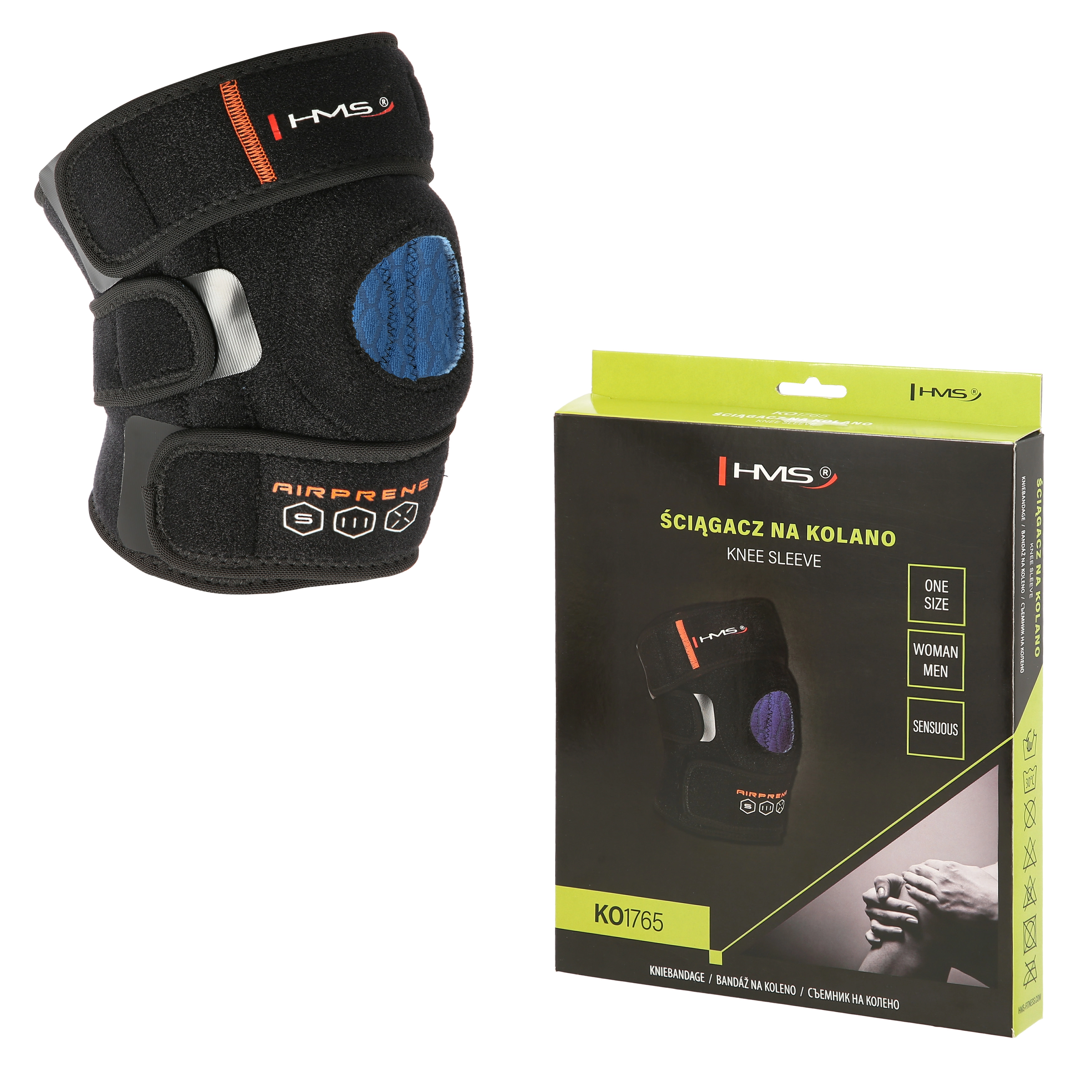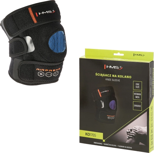A HMS KO1765 egy térdstabilizátor, amely a magabiztos mozgást és az ízület védelmét szolgálja. Az oldalsó merevítések minimalizálják a térd nem kívánt oldalirányú csavarodását, a rugalmas anyag alkalmazkodik a láb formájához, a tépőzárak pedig gyors felvételt és a kompresszió finomhangolását teszik lehetővé. A puha párnázású, nyitott térdkalács-rész tehermentesíti a patellát és támogatja a térdízület helyes vezetését.