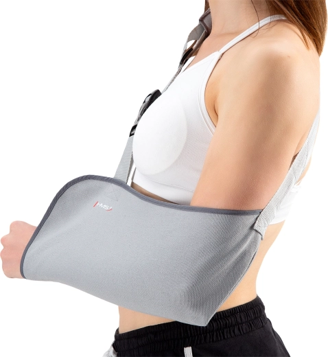 A textil bölcső biztonságosan megtámasztja az alkart, és kényelmes pozícióban rögzíti a kart, ezáltal csökkenti a fájdalmat és megakadályozza a nem kívánt mozgást a gyógyulás során.