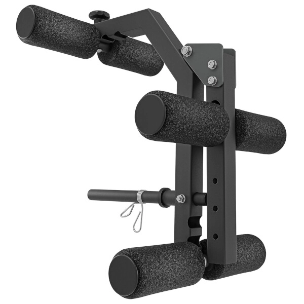 A maximális kényelem érdekében minden érintkezési pont EVA habhengerekkel van felszerelve, amelyek intenzív edzés közben is megtartják formájukat. A lábfej felső és alsó ütközői ergonomikus csavarral 3 pozícióba állíthatók, a térd alatti habhengerek 2 szinttel rendelkeznek, magát az adaptert pedig 3 magassági fokozatba állíthatod – így könnyedén személyre szabhatod a mozgástartományt és a technikát. A 21 cm hosszú, 25 mm átmérőjű terhelőtüske a legfeljebb 36 cm átmérőjű, szabványos tárcsákkal kompatibilis.
