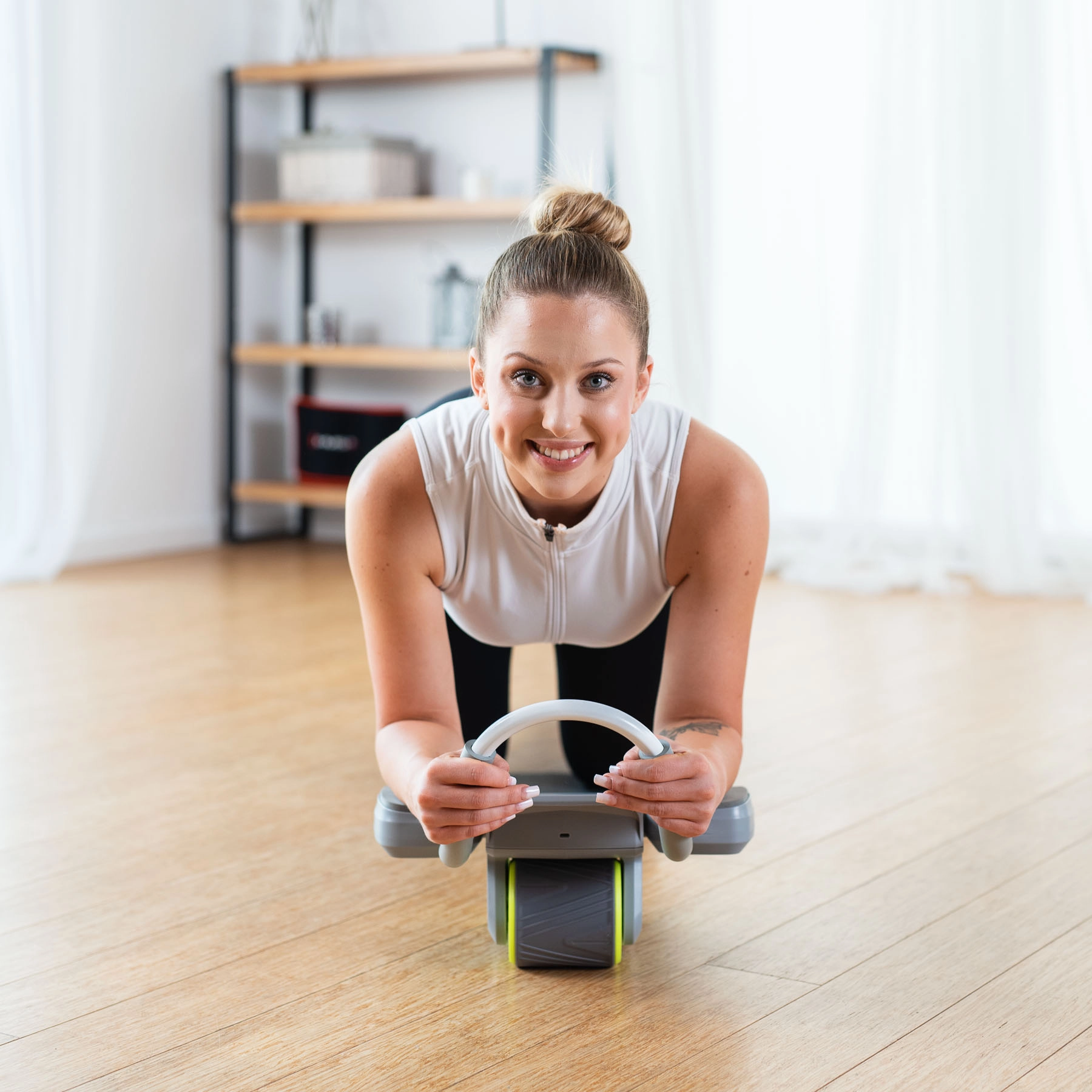 A HMS KA08 új szintre emeli a klasszikus ab rollert. Az integrált visszapattanó mechanizmus segít a kiinduló pozícióba történő visszatérésben, csökkenti az alsó hát terhelését, és lehetővé teszi a hosszabb, hatékonyabb edzéseket. Az LCD kijelző áttekinthetően mutatja az időt, a kalóriát, az ismétlések számát és gyakoriságát, míg a praktikus telefontartó megkönnyíti az edzésalkalmazások használatát.