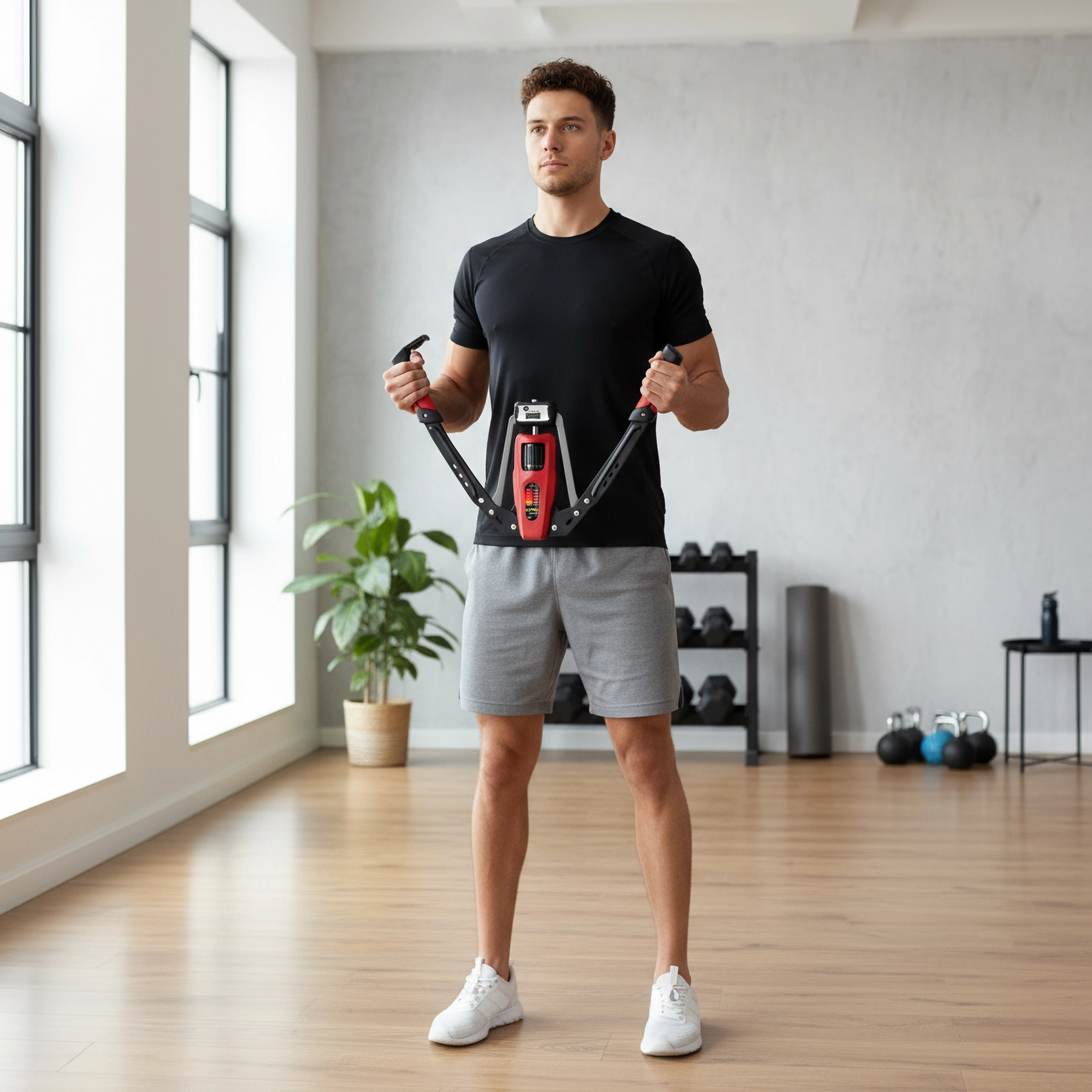 A masszív, mégis kompakt kialakítás kinyílás elleni zárral és TPR csúszásmentes markolatokkal kényelmet és biztonságot nyújt edzés közben. Összecsukva mindössze 43 × 17 cm, súlya kb. 2,5 kg, így könnyen elfér fiókban vagy sporttáskában. Célzott edzésre használható a mellizmok, bicepsz, tricepsz, váll és a hát felső része számára.